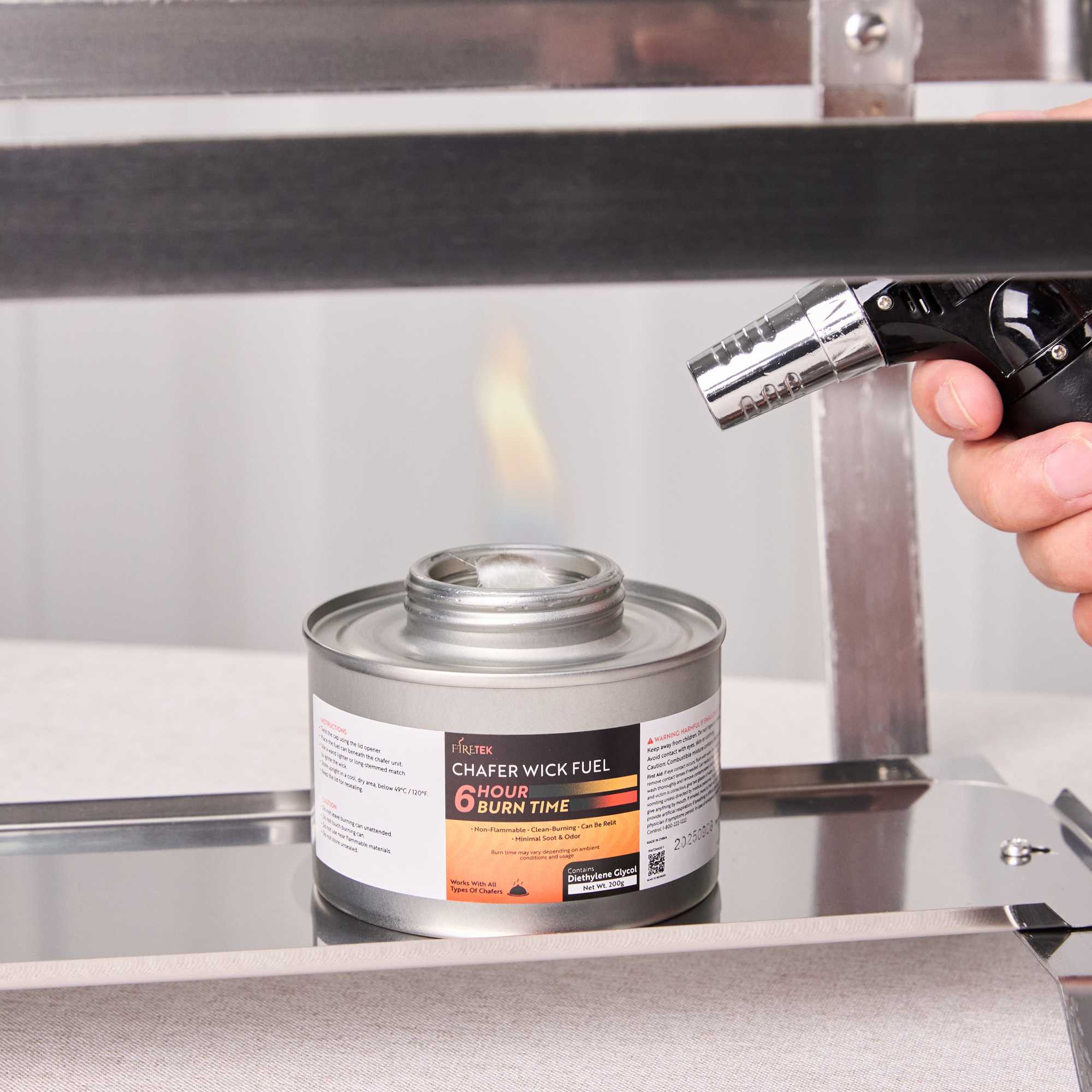 Ensure consistent food warmth with clean-burning chafing dish fuel. Fire Tek Clean-Burning Chafing Dish Fuel, featuring a safety cap, is crafted with diethylene glycol fuel, ensuring your dishes remain hot and ready to serve without the hassle of frequent maintenance. Its clean-burning nature minimizes soot and odor, making it ideal for extended events where maintaining ambiance is key. The convenient screw cap top allows for safe, spill-free storage, enhancing operational efficiency for caterers who rely on reliable food warming fuel. Each container measures 10.75 inches in length, 6.9 inches in width, and 2.8 inches in height, perfectly designed to fit seamlessly into your chafing setups. Plus, a free opener is included with every purchase, simplifying the handling of this diethylene glycol fuel and ensuring a mess-free experience. Each order includes 6 Fire Tek Non-Flammable Chafing Dish Fuels – Screw-Cap, Lid Opener.