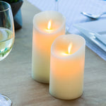 IVORY PLASTIC FLAMELESS PILLAR CANDLE - REAL WAX, PROGRAMMABLE