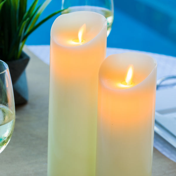 IVORY PLASTIC FLAMELESS PILLAR CANDLE - REAL WAX, PROGRAMMABLE