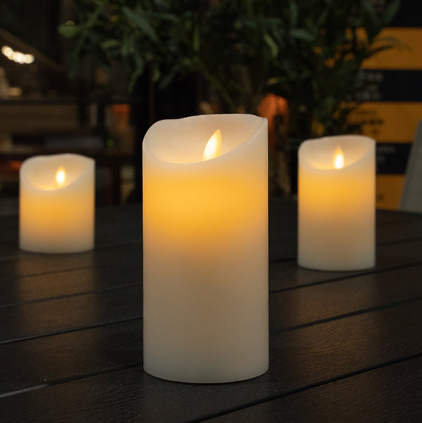 WHITE PLASTIC FLAMELESS PILLAR CANDLE - REAL WAX, PROGRAMMABLE