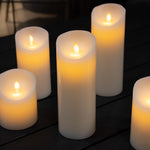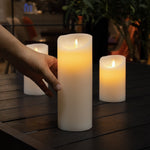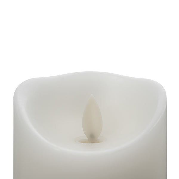 WHITE PLASTIC FLAMELESS PILLAR CANDLE - REAL WAX, PROGRAMMABLE