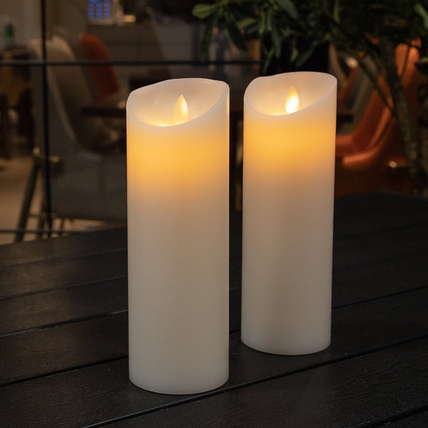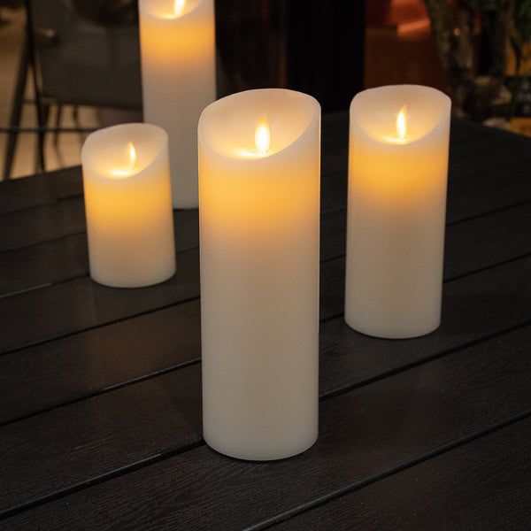 WHITE PLASTIC FLAMELESS PILLAR CANDLE - REAL WAX, PROGRAMMABLE