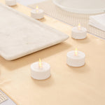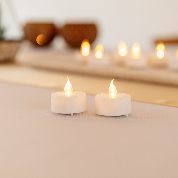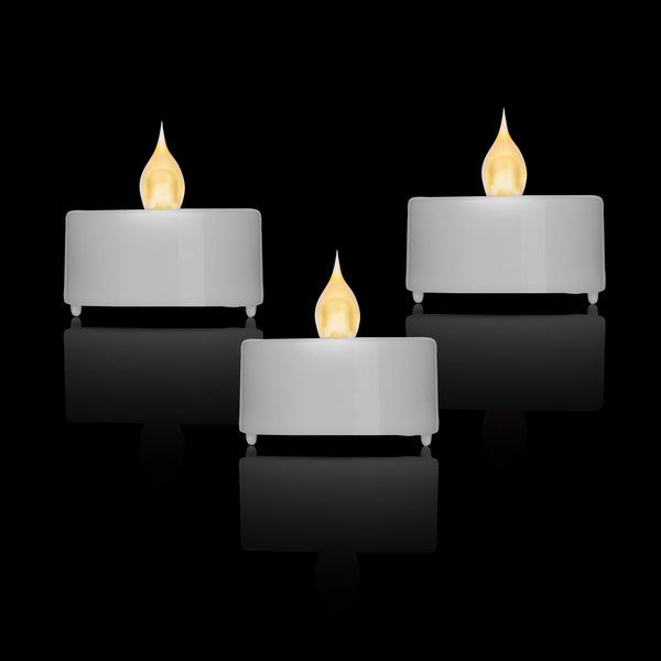 - LED flame mimics the gentle flicker of traditional wick tea lights