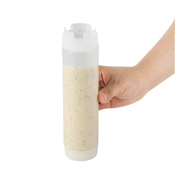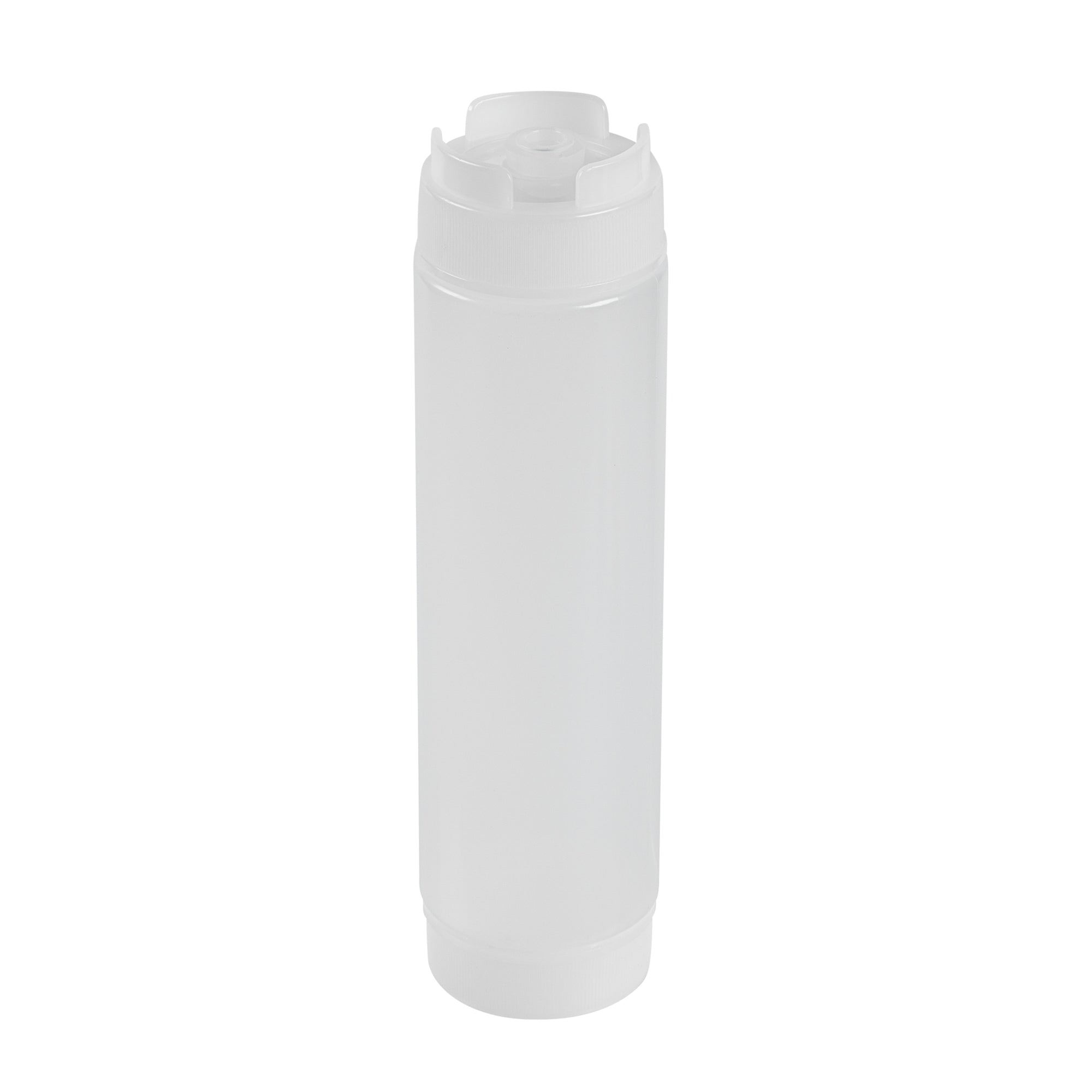 Optimize your kitchen operations with our First In First Out 16-ounce Clear Plastic Squeeze Bottle. Crafted from durable, food-grade plastic, this squeeze dispenser retains its shape while providing a reliable solution for your condiment needs. This refillable squeeze bottle features a 'first in, first out' design, ensuring your sauces and condiments remain consistently fresh. Equipped with an inverted precision tip, this condiment dispenser allows for accurate and even dispensing, perfect for precise portion control. The automatic sealable valve of this sauce bottle opens only when squeezed, avoiding spills and mess. Maintenance is a breeze as this plastic squeeze bottle is compatible with dishwashers, saving valuable time in bustling kitchens. With a 16-ounce capacity, this squeeze bottle measures 2.28 inches in diameter by 8.86 inches in height, making it a compact yet efficient addition to your kitchen tools. Sold in a 1 count box.