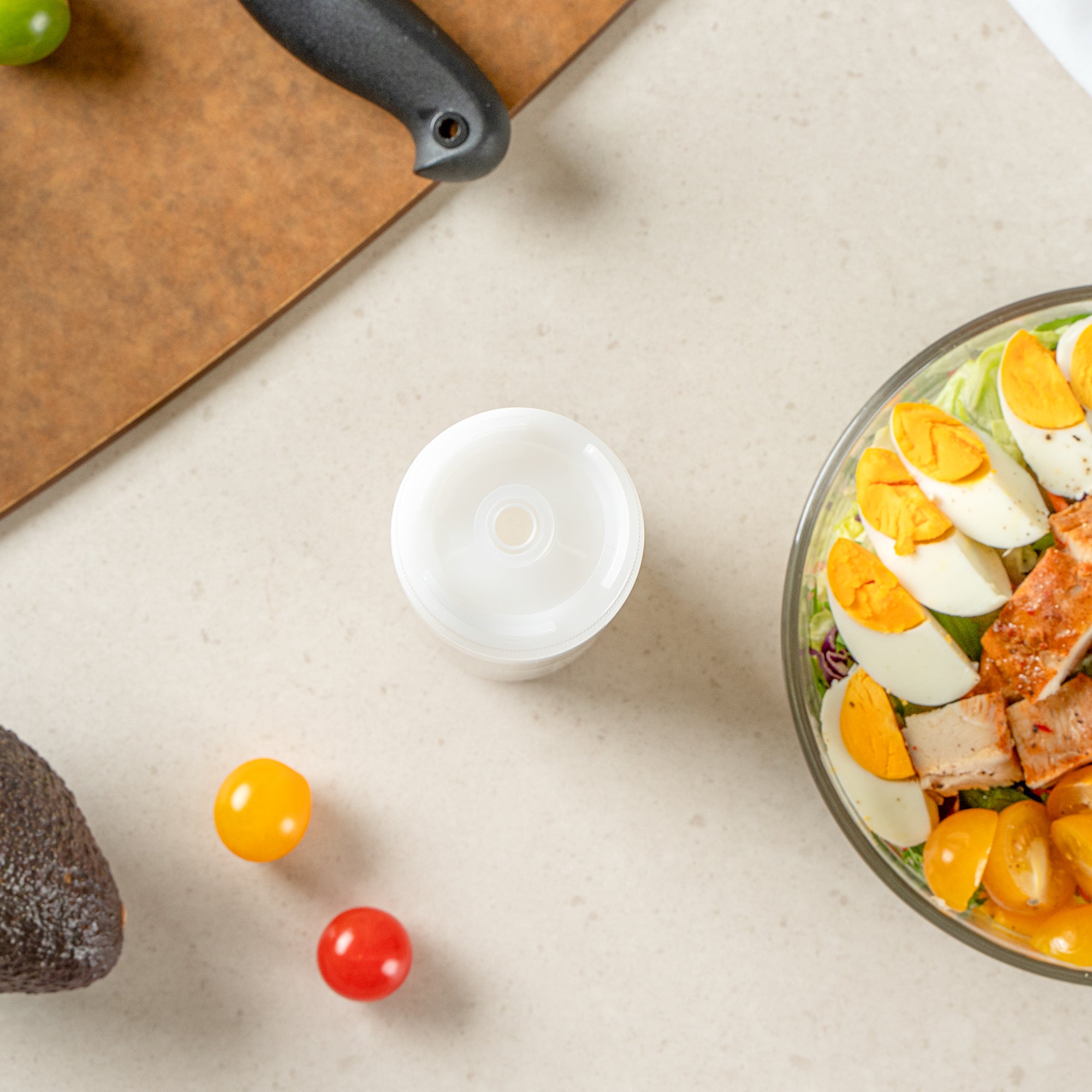- Refillable lid allows 'first in, first out' method for continuous freshness
