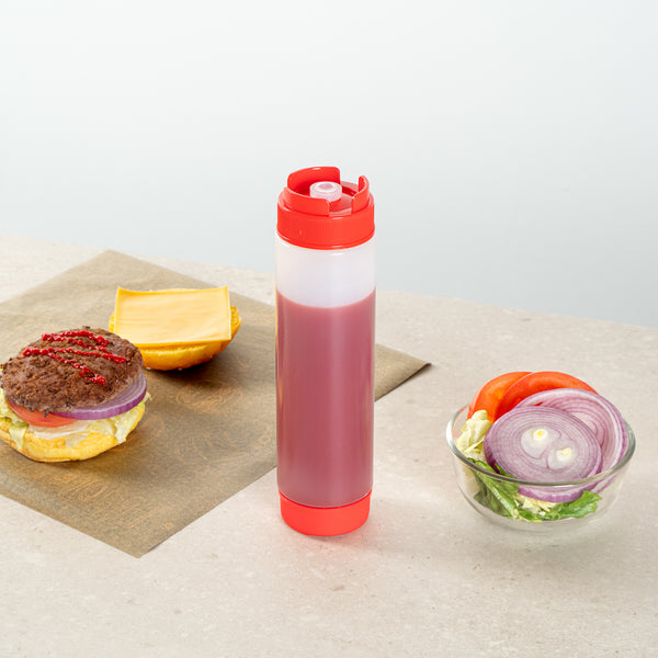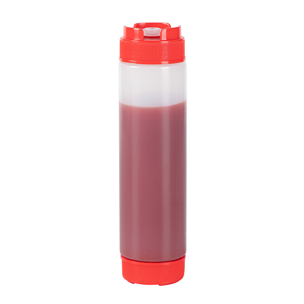 Enhance your kitchen efficiency with our First In First Out 16-ounce Red Plastic Squeeze Bottle. Crafted from durable, food-grade plastic, this refillable squeeze bottle retains its shape after every use. Featuring an innovative 'first in, first out' design, this squeeze dispenser ensures the freshness of your sauces and condiments with every refill. The inverted precision tip of this plastic squeeze bottle allows for accurate and even dispensing, providing precise portion control to enhance food presentation. Equipped with an automatic sealable valve, this sauce bottle opens only when squeezed, avoiding spills and ensuring a no-mess experience. For easy maintenance, this condiment dispenser is easy to clean in busy kitchens. With a generous 16-ounce capacity, this refillable squeeze bottle measures 2.28 inches in diameter by 8.86 inches in height, apt for fitting into tight spaces while maximizing storage efficiency. Sold in a 1 count box.