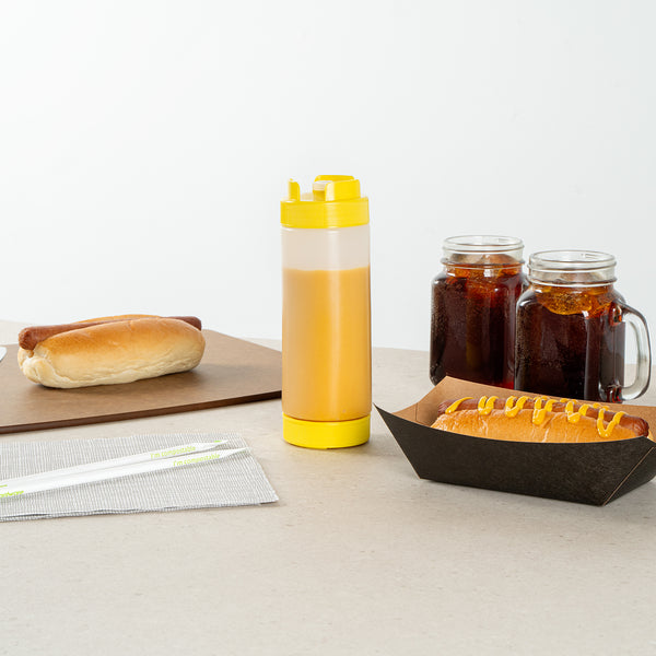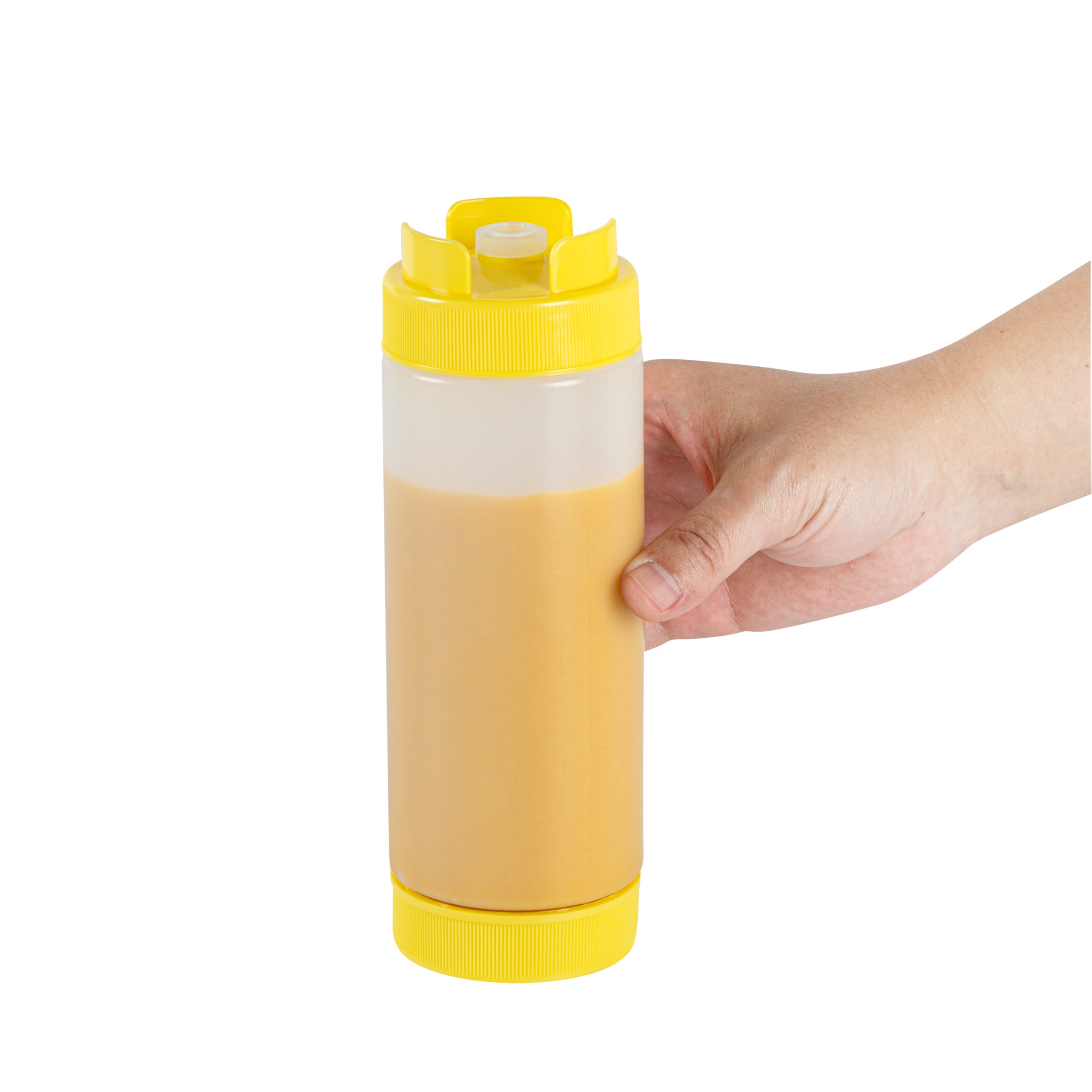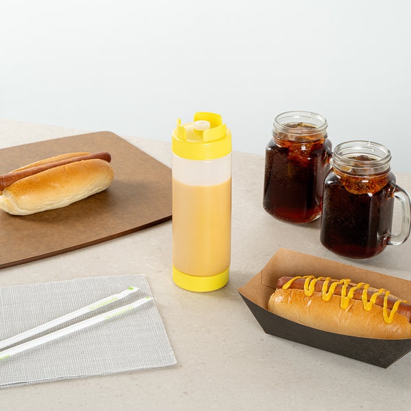 Elevate your kitchen efficiency with our First In First Out 20-ounce Yellow Plastic Squeeze Bottle, designed to streamline condiment management with style and functionality. This innovative condiment dispenser features a 'first in, first out' refillable lid, ensuring that your sauces are always fresh and ready for use. Crafted from food-grade plastic, this squeeze dispenser effortlessly retains its shape. The inverted precision tip of this refillable squeeze bottle allows for accurate and even dispensing, offering precise portion control with every squeeze. Equipped with an automatic sealable valve, this plastic squeeze bottle avoids spills and ensures use without mess. For added convenience, this sauce bottle is suitable for dishwashers, allowing for quick cleaning that saves valuable time. Measuring 2.72 inches in diameter and standing 7.87 inches tall, this squeeze bottle boasts a generous capacity of 20 ounces, apt for storing a variety of condiments. Sold in a 1 count box.