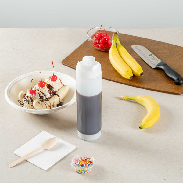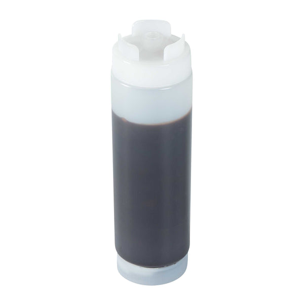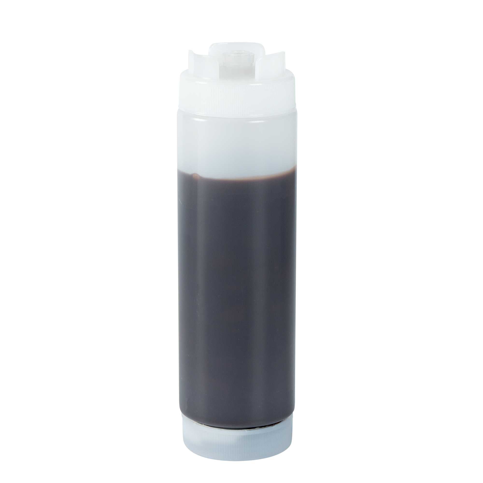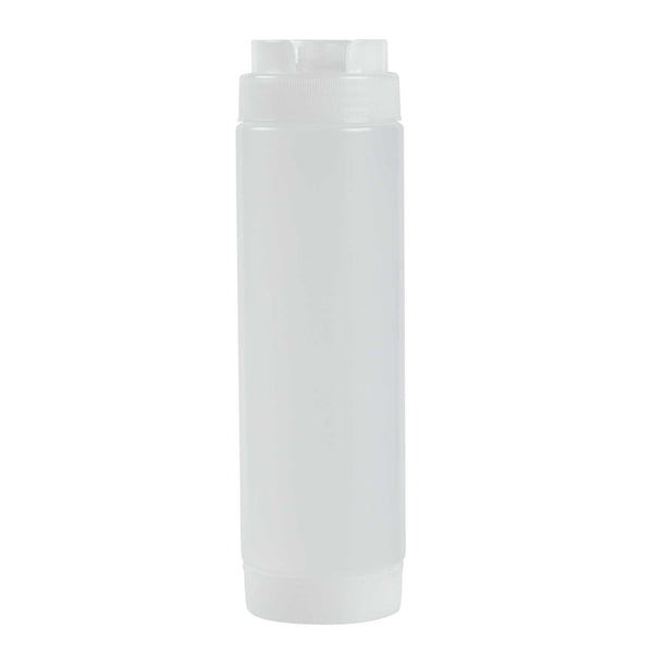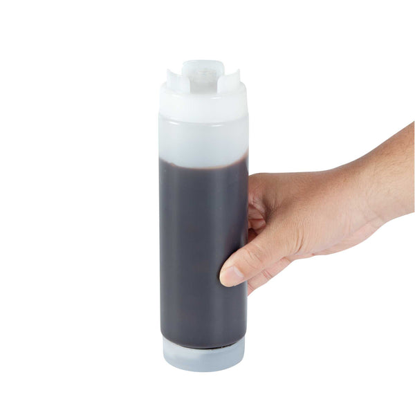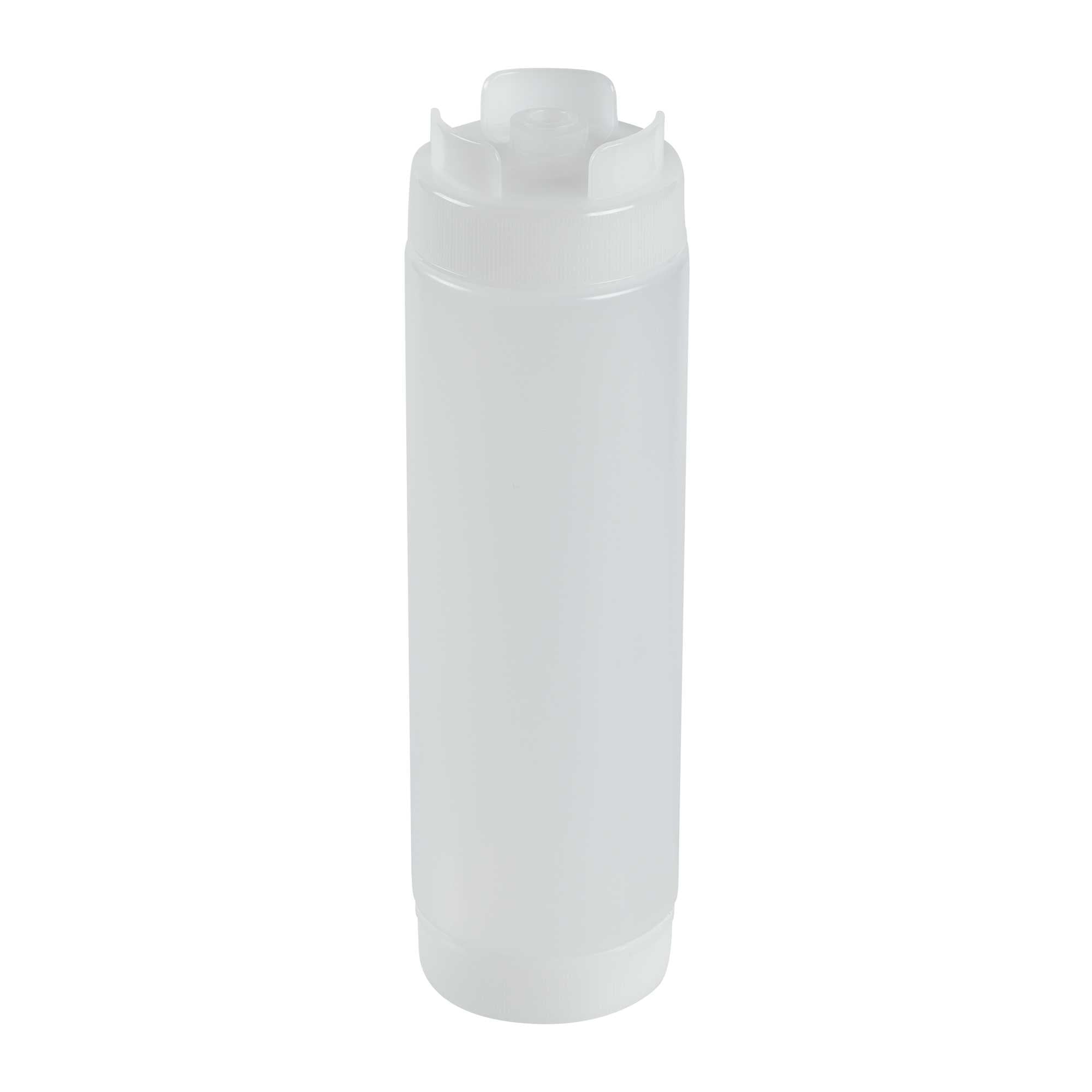 Upgrade your foodservice tools with our First In First Out 24-ounce Clear Plastic Squeeze Bottle. Crafted from durable, food-grade plastic, this squeeze dispenser maintains its shape after every use, ensuring reliability. The innovative refillable lid of this squeeze bottle employs a 'first in, first out' design, keeping your condiments fresh with every squeeze. Designed with an inverted precision tip, this condiment dispenser delivers accurate and even dispensing for perfect portion control. Featuring an automatic sealable valve, this refillable squeeze bottle opens only when squeezed, preventing spills and ensuring a mess-free experience. Simplify your kitchen maintenance with this dishwasher-safe plastic squeeze bottle, making cleaning quick and hassle-free. With a capacity of 24 ounces, this sauce bottle measures 2.72 inches in diameter by 9.25 inches in height, making it a versatile addition to any kitchen. Sold in a 1 count box.