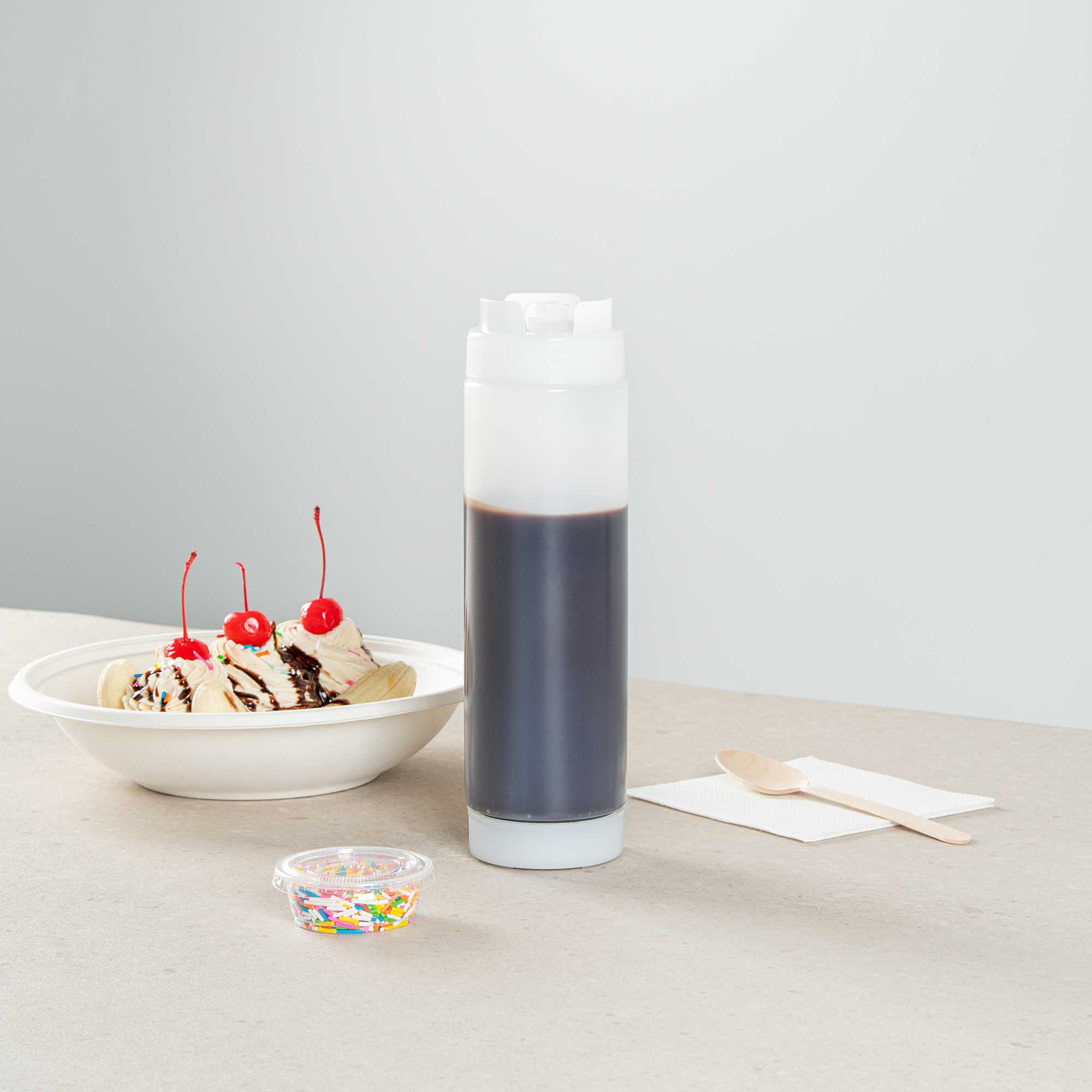 24 OZ CLEAR PLASTIC SQUEEZE BOTTLE - INVERTED, REFILL & DISPENSING LID