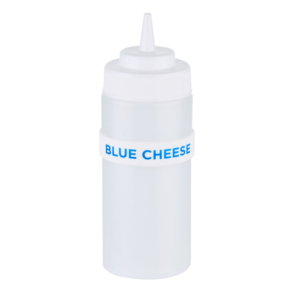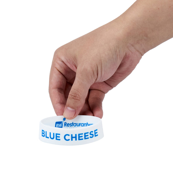 Enhance kitchen efficiency with reliable condiment organization. The First In First Out Ergonomic Grip Squeeze Bottle Label Bands boast a durable silicone construction that provides a secure grip and withstands the demands of busy foodservice environments. With their color-coded design, these squeeze bottle label bands prevent ingredient mix-ups, ensuring that your kitchen maintains accuracy and speed. Their dishwasher-safe feature simplifies cleaning, promoting hygiene and food safety standards. These silicone bottle labels are designed to fit 16, 20, and 24-ounce squeeze bottles, offering versatile compatibility for various kitchen needs. The clearly labeled "Blue Cheese" marking allows for quick identification, streamlining operations and reducing errors. Maintain an organized kitchen with these essential condiment organizing labels, perfect for any fast-paced restaurant setting. Each order includes 10 First In First Out Ergonomic Grip Squeeze Bottle Label Bands.