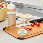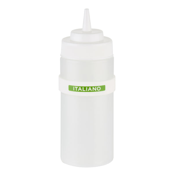 Ensure optimal freshness with the First In First Out Silicone Label Band. Designed to fit 16, 20, and 24-ounce squeeze bottles, this silicone label band enhances kitchen efficiency. Featuring a durable silicone construction, this condiment label band withstands frequent use in busy kitchen environments and provides additional grip to prevent bottle slips. The clearly printed Italian labels ensure accurate ingredient identification, reducing errors. With dimensions of 2.75 inches by 2.75 inches and a height of 0.75 inches, this label band for squeeze bottles offers a versatile fit across various container sizes, making it an invaluable tool for culinary professionals. Its easy application and removal facilitate quick changes and cleaning, helping maintain high hygiene standards. Enhance your kitchen's operational efficiency with this essential food safety tool. Each order includes 1 First In First Out Silicone Label Band.