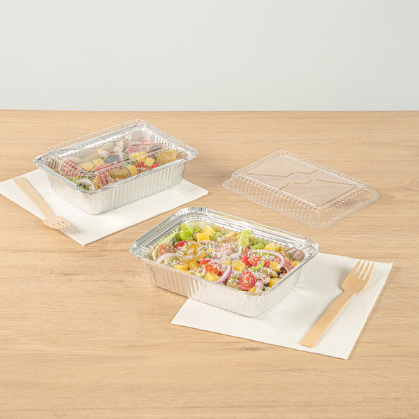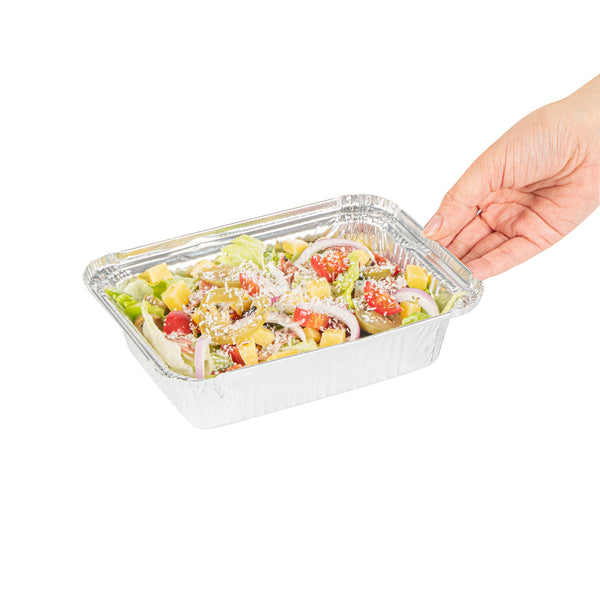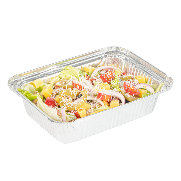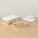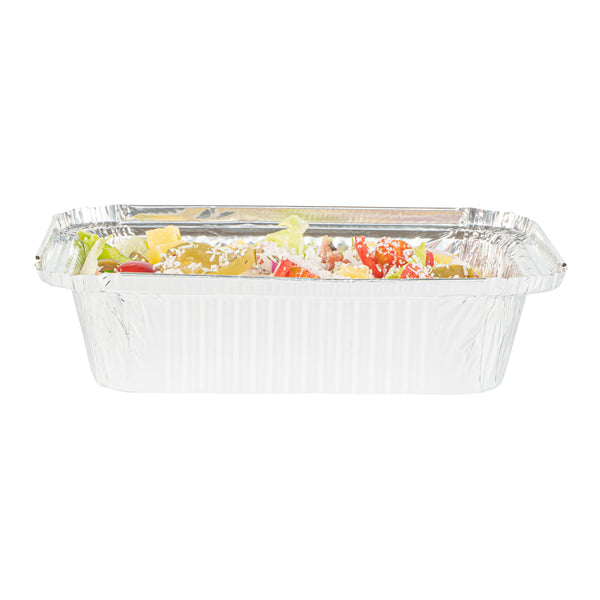 Ensure versatile food service with our Foil Lux Oblong Aluminum Takeout Container. This aluminum takeout container features an oven-safe construction that allows you to bake and serve dishes up to 1.5 inches in depth, providing the ultimate convenience for busy kitchens. The unique oblong shape of this oven-safe aluminum container is designed to accommodate a variety of foods, from lasagnas to casseroles, ensuring flexibility in your menu offerings. For added convenience, it includes both foil and plastic lid options, offering the storage flexibility needed to keep dishes fresh and ready for transport. Its 7.25-inch by 5.25-inch dimensions make it ideal for individual meal servings, while the recyclable material supports sustainable practices. Elevate your food presentation and streamline your operations with this disposable oblong container, perfect for catering events or restaurant takeout services. Sold in a 100 count box.