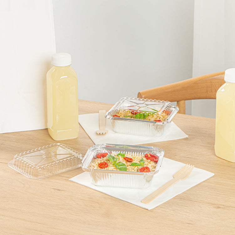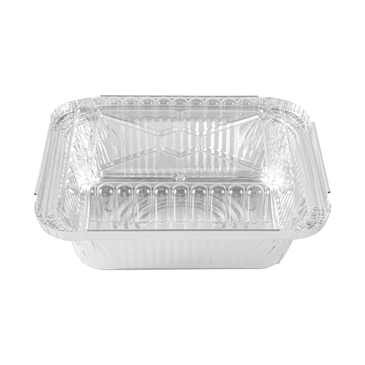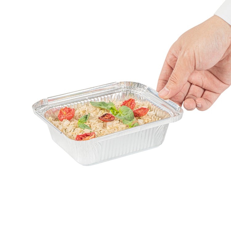 Enhance your foodservice efficiency with versatile storage solutions. Foil Lux Foil Takeout Containers feature foil lid and plastic lid compatibility, giving you flexibility in food storage needs. Made from oven-safe aluminum, these containers allow you to bake and serve dishes in the same container, saving time and reducing cleanup efforts. With their unique oblong shape, measuring 5.75 inches by 4.75 inches, these aluminum take-out containers provide ample room to accommodate a wide range of food items, from entrees to sides and desserts. Whether you're storing hot meals or cold treats, these foil containers with lids are freezer-safe and recyclable, making them an eco-conscious choice for restaurants and catering services. Equip your kitchen with these multipurpose containers and streamline your food preparation and storage processes. Sold in a 100 count box.