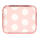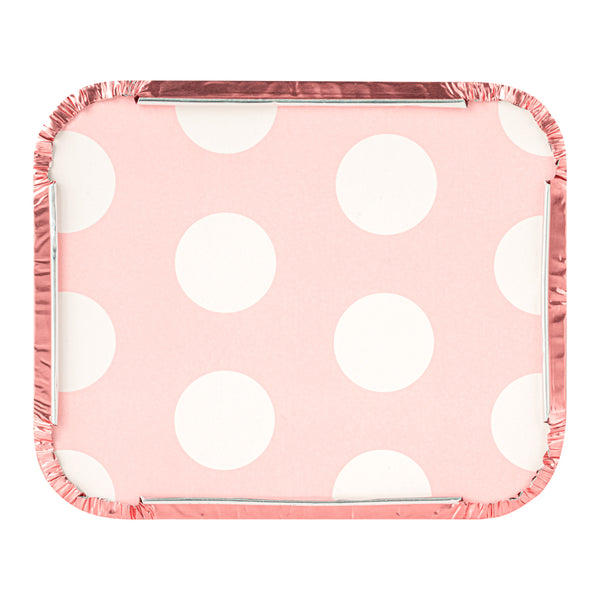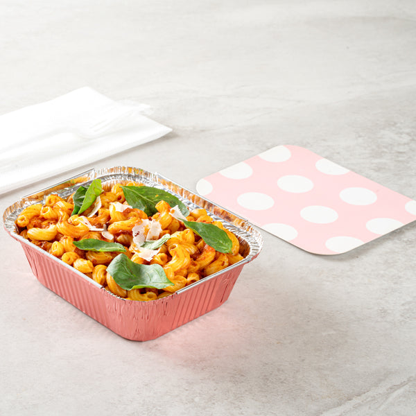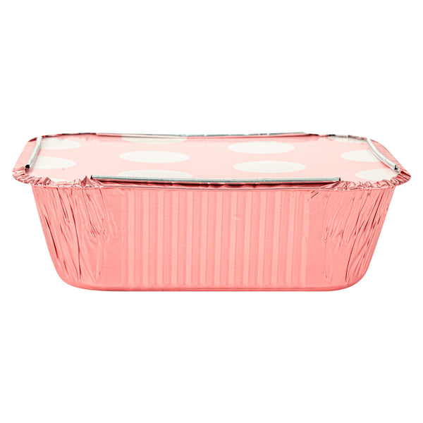 Foil Lux 12 oz Rectangle Pink Aluminum Take Out Container - Polka Dot Paper Lid - 5 3/4