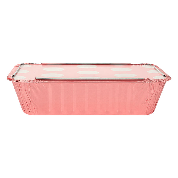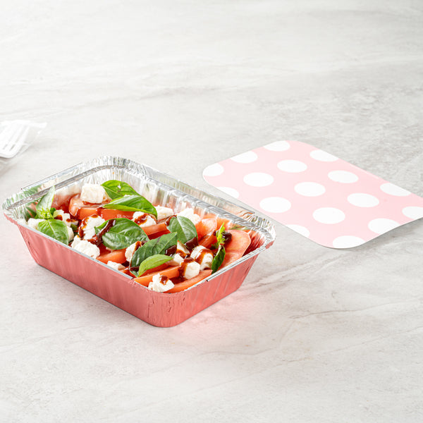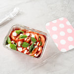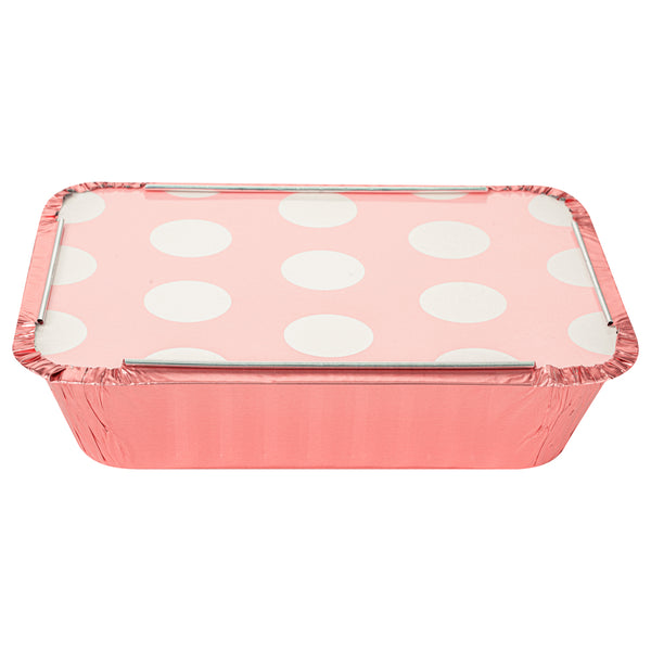 16 OZ PINK ALUMINUM TAKE OUT CONTAINER - POLKA DOT PAPER LID