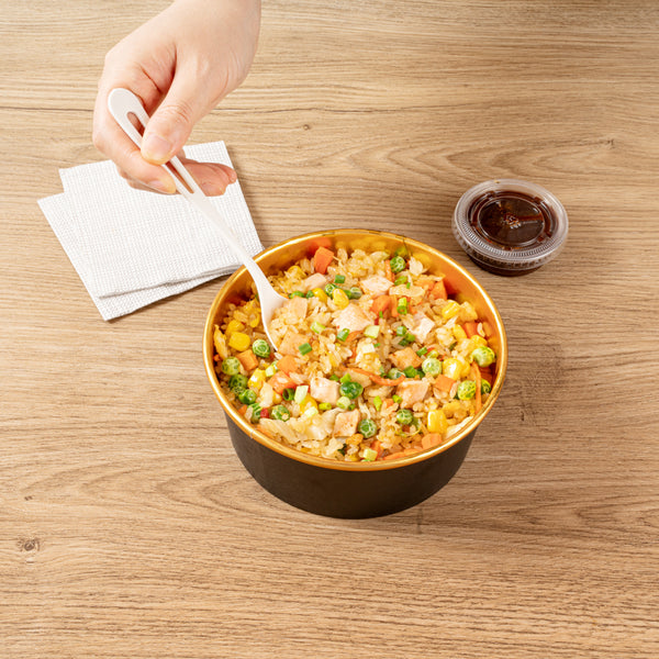 25 OZ BLACK AND GOLD PAPER TAKE OUT CONTAINER - WITH FOIL INTERIOR