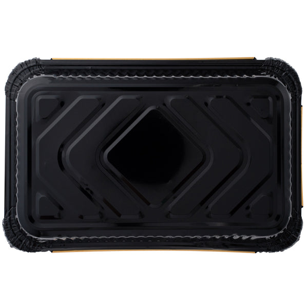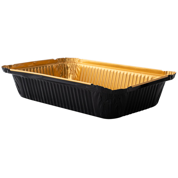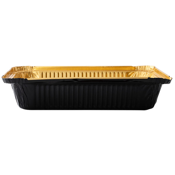 Foil Lux 27 oz Rectangle Black and Gold Aluminum Container - 8 1/4