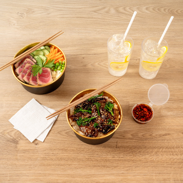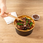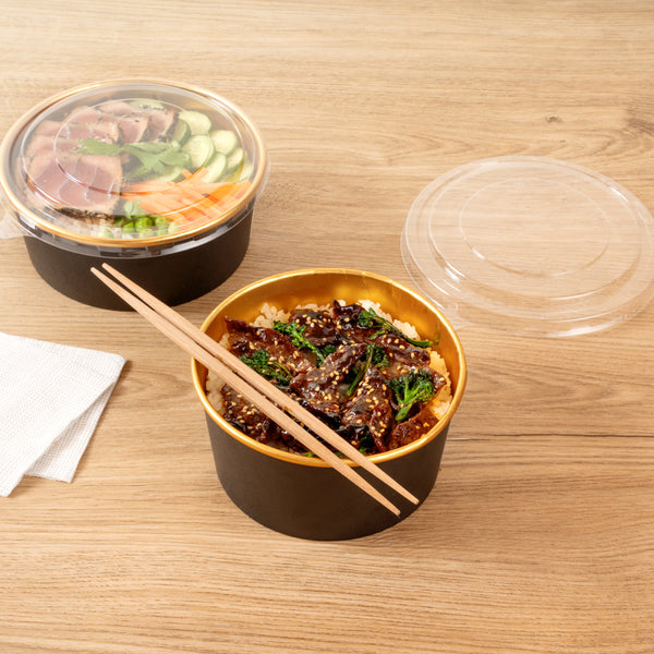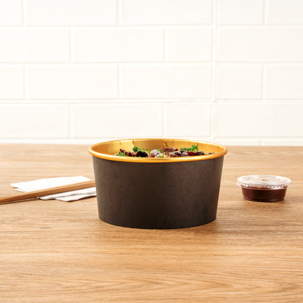 33 OZ BLACK AND GOLD PAPER TAKE OUT CONTAINER - WITH FOIL INTERIOR