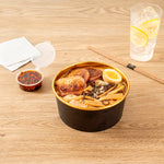 42 OZ BLACK AND GOLD PAPER TAKE OUT CONTAINER - WITH FOIL INTERIOR