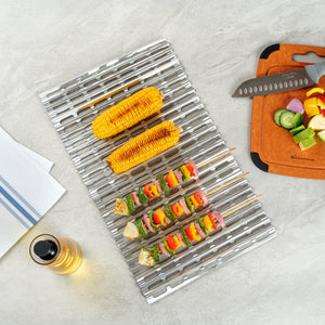 Streamline your grilling process with effortless cleanup. The Foil Lux Non-Stick Disposable Grill Liner offers a convenient disposable design that eliminates the need for scrubbing, saving time and labor costs in busy kitchens. Crafted from aluminum, this liner provides exceptional heat conductivity, ensuring even cooking of meats and vegetables on the grill. Measuring 19.75 inches by 12 inches, it fits most commercial grills, making it the perfect aluminum foil grill protector for caterers and food trucks. The innovative non-stick surface prevents food from sticking, allowing you to grill a variety of meats without losing their shape, while the stretchable design ensures compatibility with standard-sized grills. Ideal for outdoor barbecues and catering events, its oven-safe structure expands its versatility to baking or reheating foods, making it a non-stick BBQ liner you can rely on. Enhance your foodservice operations with this indispensable tool. Each order includes 10 Foil Lux Non-Stick Disposable Grill Liners.