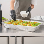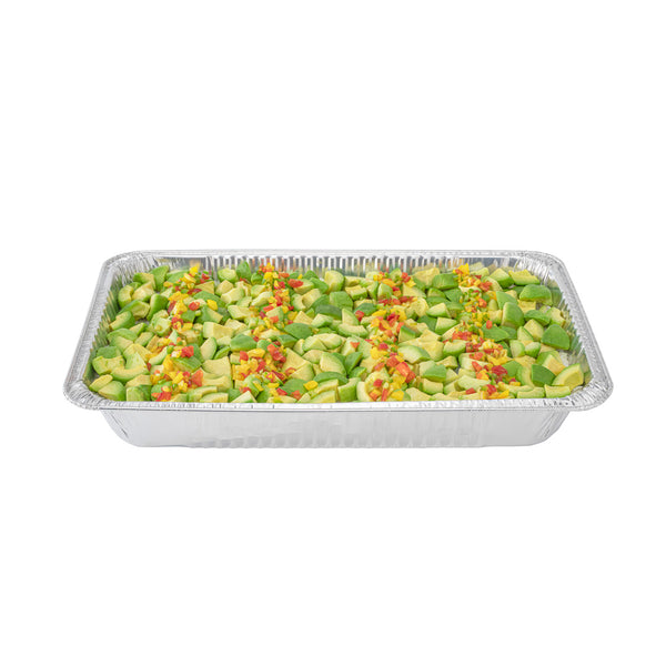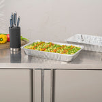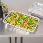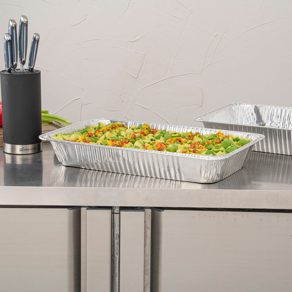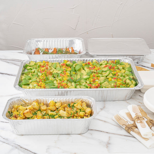 Prep, bake, and serve food with our Foil Lux Aluminum Full Size Deep Steam Table Pans. Made from high-quality aluminum, these full-size steam table pans are strong and sturdy to hold up to 346 ounces of your casseroles or lasagnas. Match these full steam pans with our compatible lid (SKU: RWM0120S) to keep food from spilling and creating a mess during transport. These full-size foil pans are oven-safe so you can easily bake or broil entrees. Plus, they're also freezer-safe to store leftovers in the refrigerator or freezer. To save space in your storage area, these chafing dish steam pans are conveniently stackable. For avoiding the hassle of cleaning up after events, these aluminum steam table pans are recyclable. These disposable steam table pans measure 20.75 inches long by 12.75 inches wide by 3.5 inches tall. Sold in a 25 count box. Lids are available and sold separately.