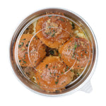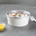 Protect packaged meals with our Foil Lux Clear Plastic Take Out Container Lids. Pair these plastic lids with our compatible Foil Lux to go containers to securely pack and protect take out orders (SKU: RWM0147W, RWM0148W, and RWM0149W). Equipped with an easy-to-open lift tab, these clear plastic lids provide a simple method for opening containers without straining your hands. Crafted from PET plastic, these lids for containers feature a transparent finish to quickly identify meals and avoid order mixups. To save space in your kitchen or storage area, these transparent lids are stackable. For quick and easy cleanup, these plastic to go container lids are recyclable. These to go lids measure 6 inches in diameter and fit 17-, 25-, and 33-ounce containers. Sold in a 200 count box. Compatible Foil Lux containers are available and sold separately.