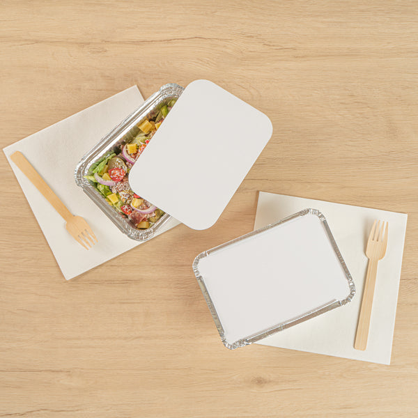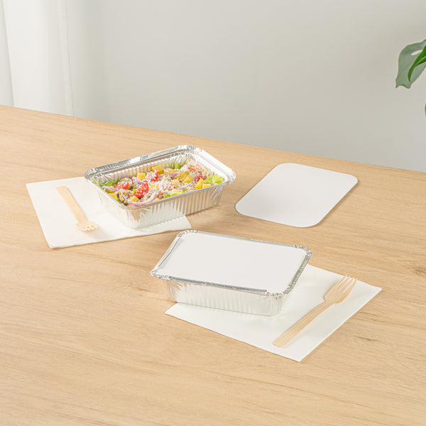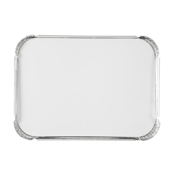 Ensure food safety with a secure enclosure that locks in freshness. The Foil Lux Secure Disposable Foil Lid provides a reliable seal to protect food from contamination, making it an essential addition to any foodservice operation. With dimensions of 7 inches by 4.9 inches, this disposable foil lid is crafted from foil paper, offering enhanced temperature retention to keep meals warm and delicious. For added convenience, its plain white board surface allows for easy labeling, ensuring fast identification of dishes during busy service hours. As an aluminum pan lid, it is designed to fit seamlessly over compatible containers, preventing spills and maintaining optimal food quality. Choose the Foil Lux Secure Disposable Foil Lid to streamline your operations and maintain high standards of food safety. Sold in a 100 count box.