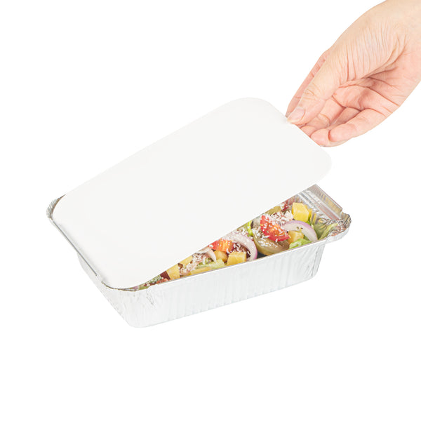 OBLONG WHITE FOIL-LAMINATED BOARD LID - FITS 1 1/2 CONTAINER