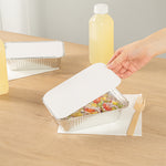- Securely seals containers to protect food from contamination