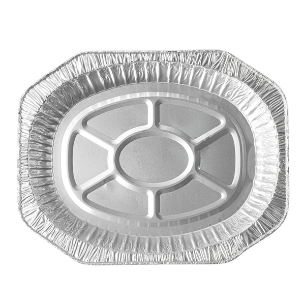 Enhance your kitchen's efficiency with versatile and reliable cookware. Foil Lux Aluminum Baking Pans offer oven and freezer compatibility, supporting your cooking, baking, and storage needs with ease. These disposable aluminum pans are crafted from thick aluminum foil, ensuring even heat distribution for perfectly consistent cooking results every time. Their stackable design maximizes space in your kitchen or pantry, allowing you to store them conveniently without clutter. Measuring 17.6 inches in length, 14 inches in width, and 3.1 inches in height, these aluminum roasting pans are ideal for a variety of dishes, from roasting meats to baking desserts. Recyclable and disposable, these pans provide an eco-friendly and time-saving solution for busy foodservice operations. Elevate your culinary capabilities with these durable and versatile pans, perfect for any professional kitchen. Sold in a 50 count box.