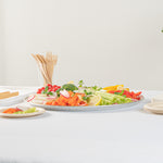 Ensure your pizza stays fresh and delicious with our Foil Lux Freshness-Seal Pizza Tray. This 16 inch pizza tray features a compatible lid that securely seals to maintain freshness during transport or storage, making it ideal for busy pizzerias and catering businesses. Crafted from premium aluminum, this round foil catering tray offers exceptional durability, perfectly suited for rigorous foodservice use. The intricate engraved pattern not only enhances the presentation of your culinary creations but also makes every dish irresistibly appealing at events. With a size of 16 inches by 16 inches and a height of 0.8 inches, this aluminum serving tray is cold food friendly, oven safe, and freezer-safe, providing versatility for both hot and cold offerings. Plus, it’s recyclable, supporting your commitment to sustainability. Elevate your foodservice operation with this indispensable 16 inch pizza tray. Sold in a 20 count box.