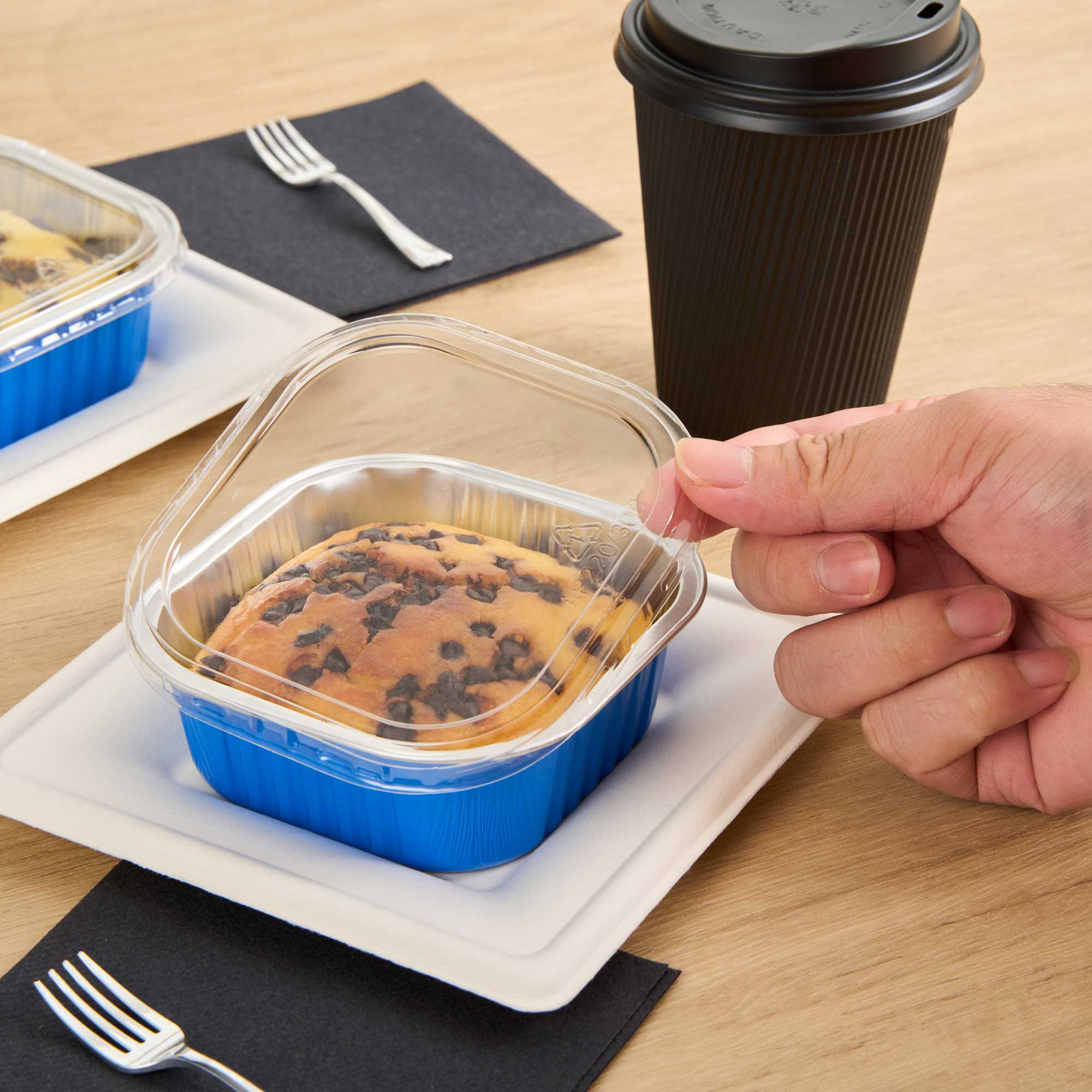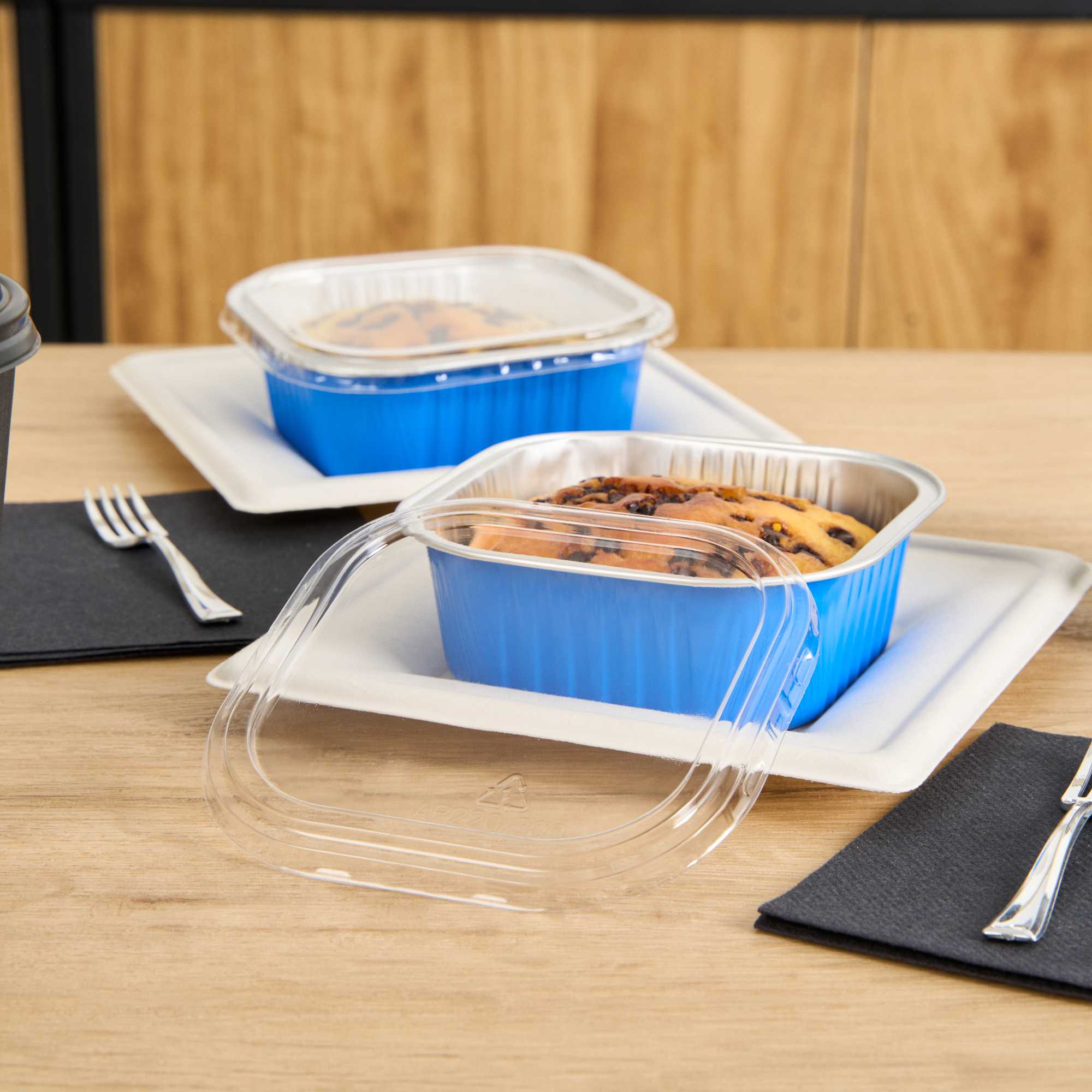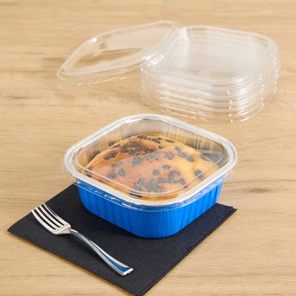 Foil Lux Square Clear Plastic Flat Lid - Fits 10 oz Aluminum Baking Cup - 4 1/2