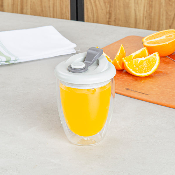 12 OZ GLASS TRAVEL MUG - DOUBLE WALL, BOROSILICATE