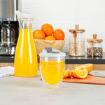 Get ready to elevate your beverage experience with our Forma 12-ounce Glass Travel Mug. This travel mug boasts a double-wall design for superior temperature retention, keeping your coffee or tea hot and your cold beverages chilled for longer. Made from borosilicate glass, this reusable coffee cup is break-resistant, ensuring durability for daily use. Capable of withstanding sudden temperature changes from -40F to 300F, this travel coffee cup offers unmatched versatility. This to go coffee cup has a hand-blown glass design and offers an elegant aesthetic that showcases the color and texture of your beverages beautifully. The silicone lid of this double wall coffee mug forms a secure seal and ensures your beverage stays put during your commute to work or school. Plus, with a convenient movable buckle, this mug lid allows for secure closure and keeps your drink safe and spill-free wherever you go. To provide a smooth sipping experience, this hot cup lid is designed with a raised spout. For a stylish look, this coffee cup lid has an elegant gray finish. This glass mug is microwave-safe and oven-safe for versatile heating options. To quickly chill your favorite iced tea, this glass tumbler is freezer-safe. Designed for convenience, this coffee tumbler is dishwasher-safe to simplify your cleaning routine, making it ideal for your active lifestyle. This clear coffee mug measures 3.25 inches in diameter by 5.5 inches in height and has a capacity of 12 ounces. Sold in a 1 count box.
