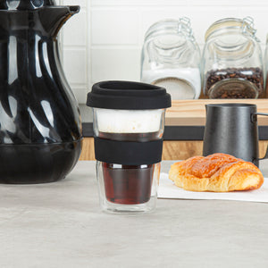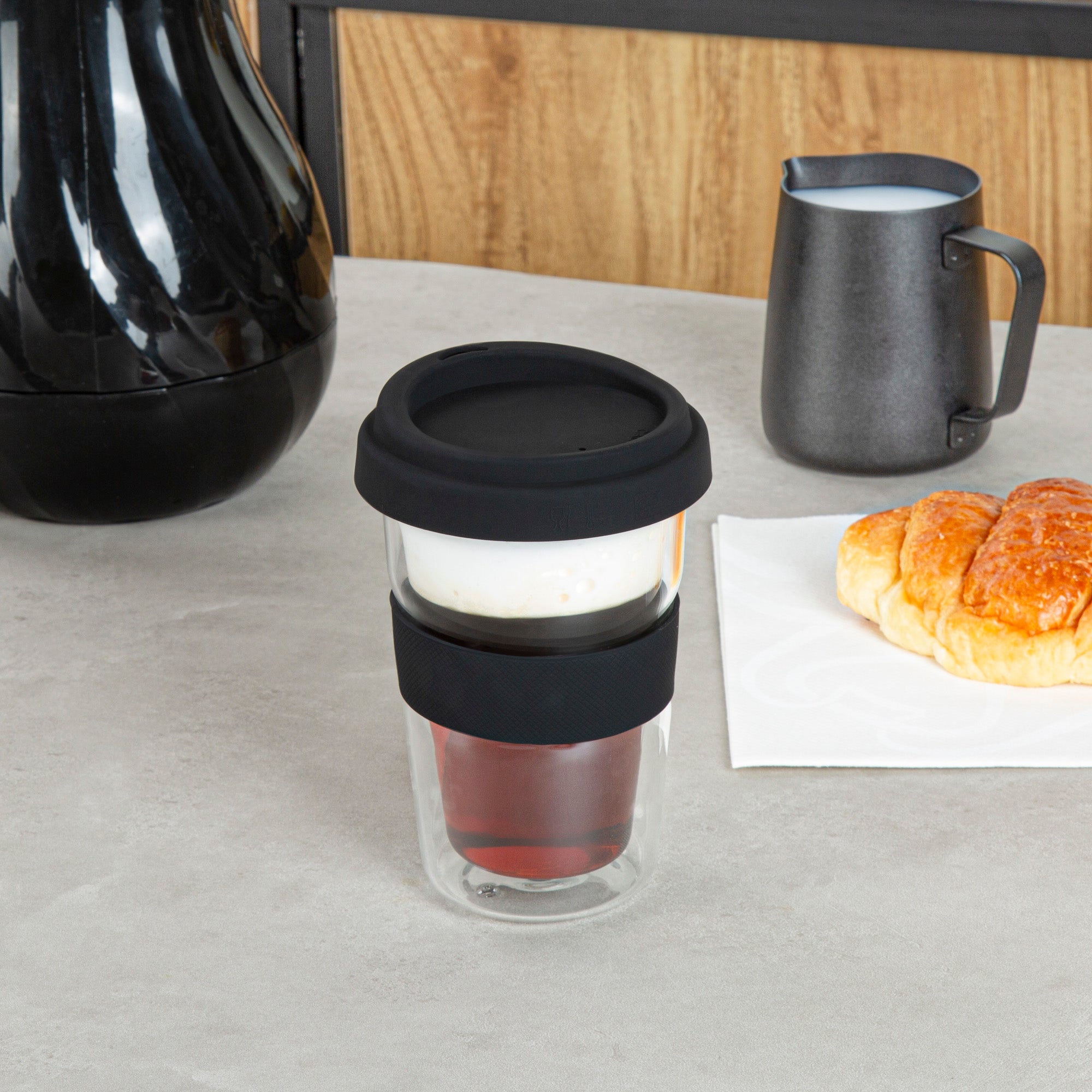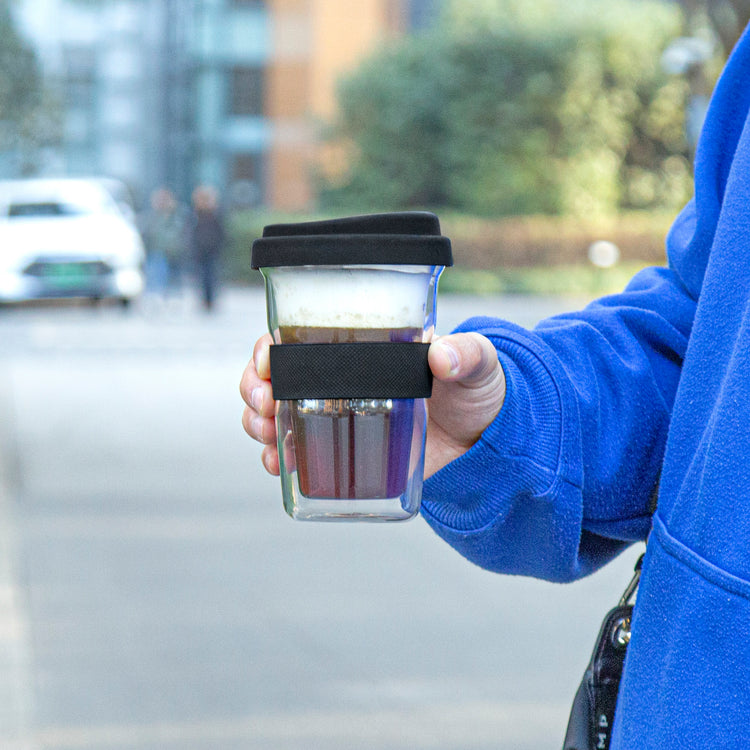 14 OZ GLASS TRAVEL MUG - DOUBLE WALL, BOROSILICATE