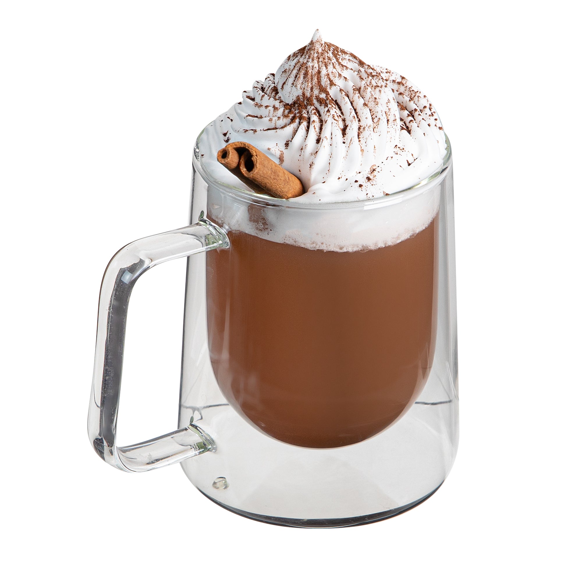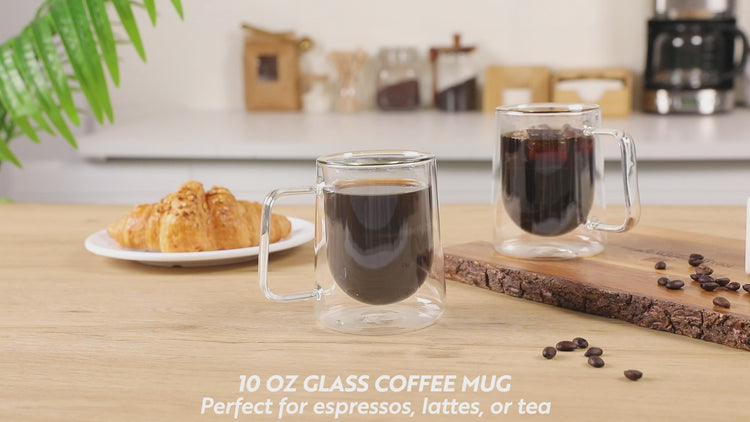 10 OZ GLASS COFFEE MUG - DOUBLE WALL, BOROSILICATE, WITH HANDLE