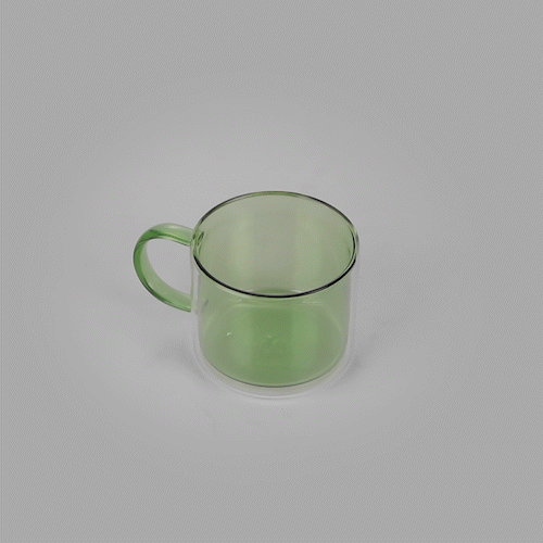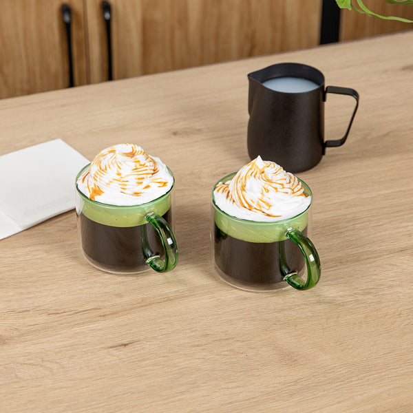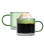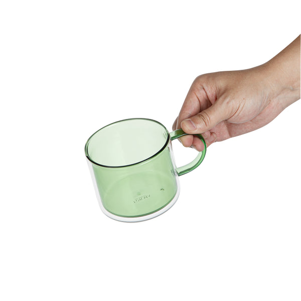 12 OZ GREEN GLASS COFFEE MUG - DOUBLE WALL, BOROSILICATE, WITH HANDLE
