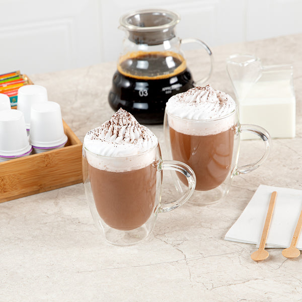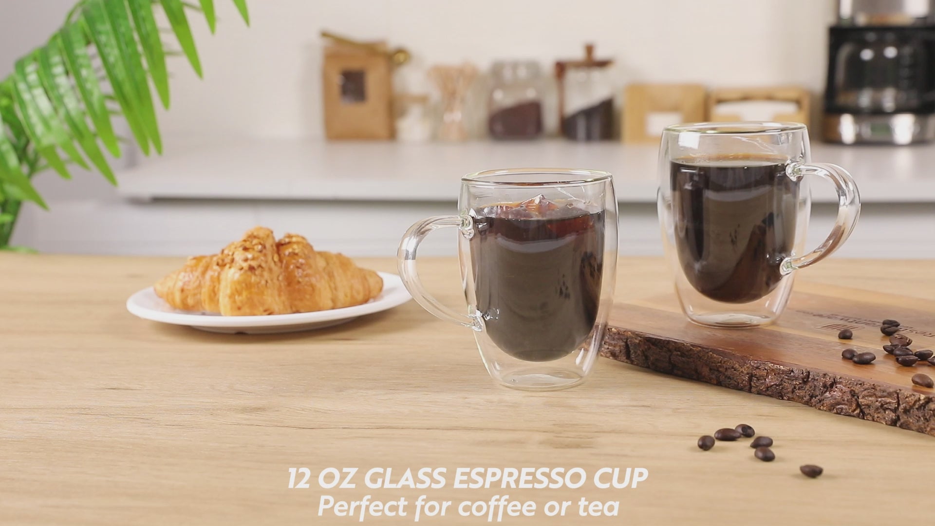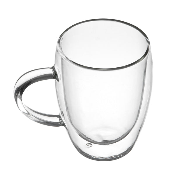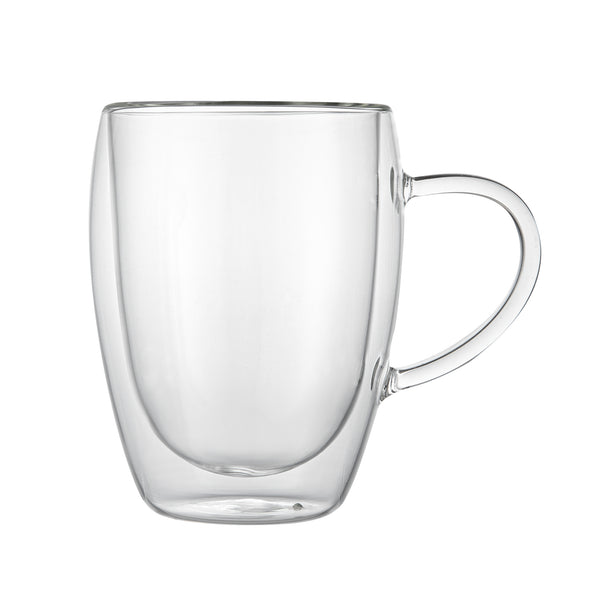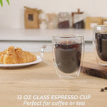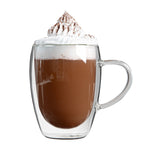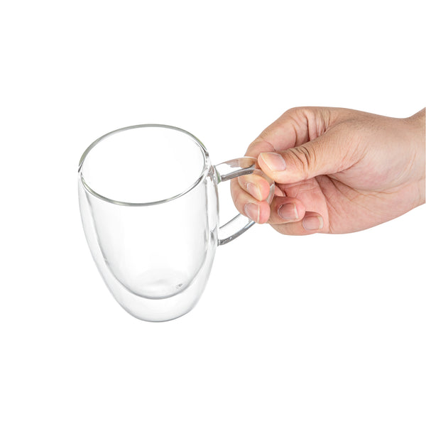 12 OZ GLASS COFFEE CUP - DOUBLE WALL, BOROSILICATE, WITH HANDLE