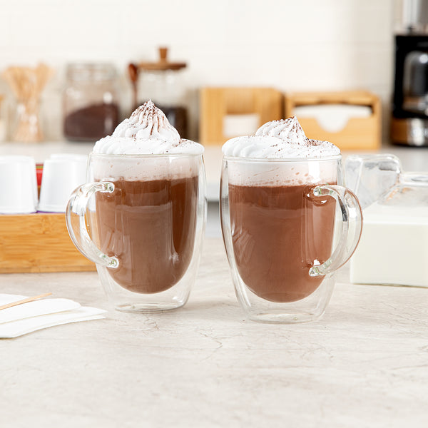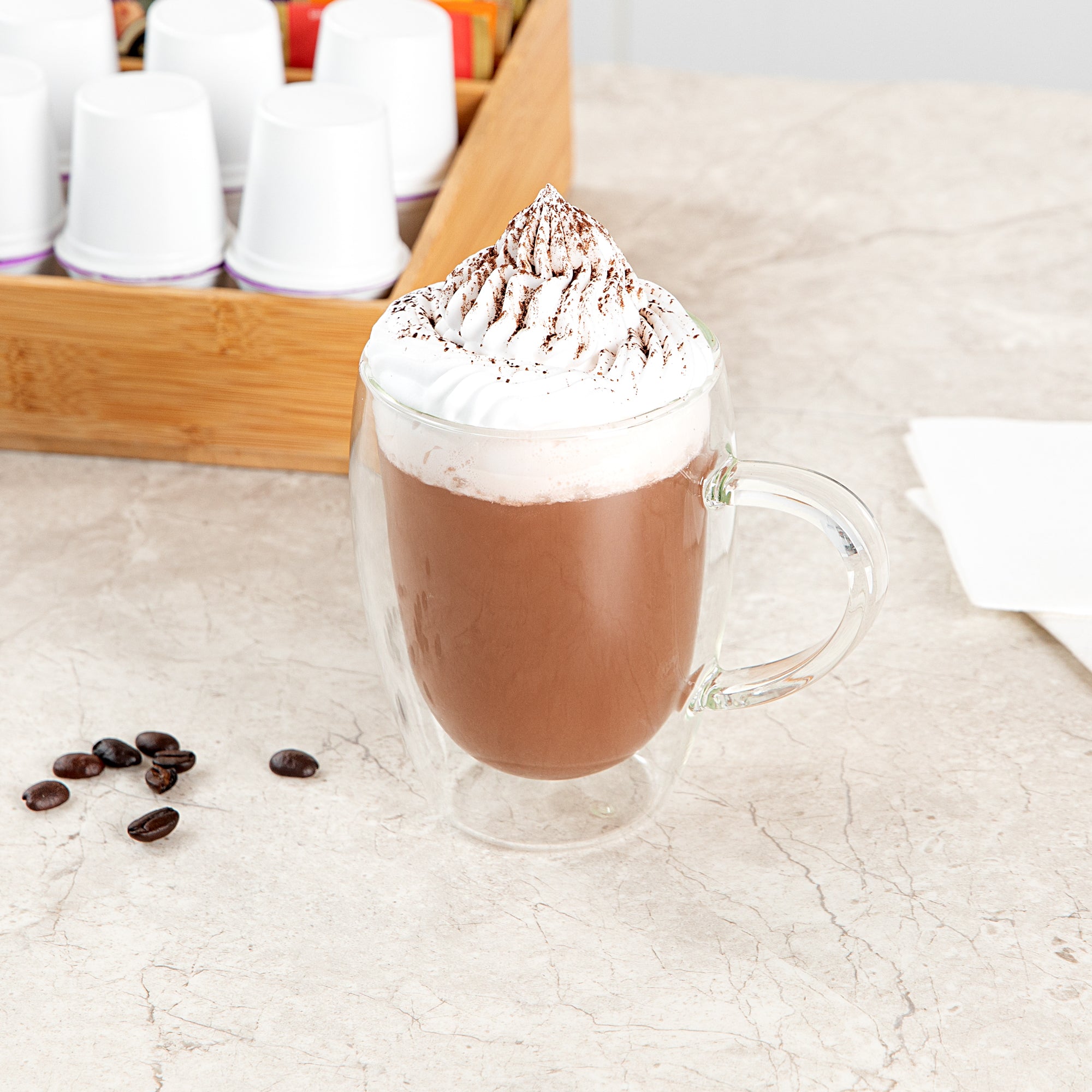 Elevate your coffee service with our Forma Professional 12-ounce Glass Coffee Cups. These glass coffee cups with handle offer an ergonomic design, enhancing comfort during use. Featuring a unique double wall construction, these coffee glasses ensure your beverage stays hot or cold longer, making them perfect for an array of drinks. Manufactured with premium borosilicate glass, these clear coffee cups provide superior durability and temperature resistance, withstanding up to 350F. The scratch and break-resistant design of these glass coffee cups ensures their longevity, even in busy foodservice environments. These glass coffee cups with handle are also easy to clean as they are dishwasher-safe, ensuring quick clean-up after use. Plus, these borosilicate coffee cups are oven, microwave, and freezer-safe, offering versatility in use and easy reheating or cooling of beverages. These 12-ounce glass coffee cups measure 3 inches in diameter by 4.5 inches in height, providing an ample capacity for serving generous portions of coffee or other hot beverages. Sold in a 2 count box.