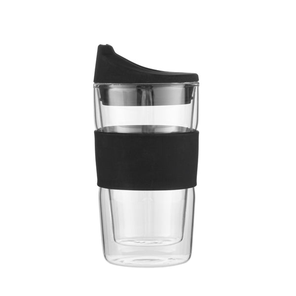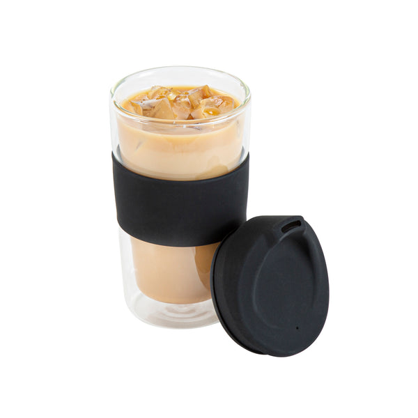 12 OZ GLASS TRAVEL MUG - DOUBLE WALL, BOROSILICATE