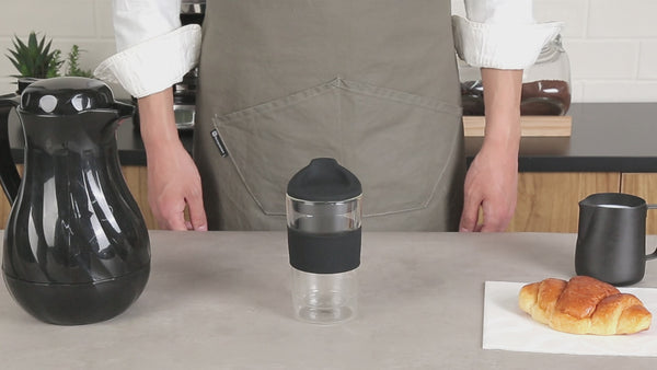 Prevent spills on the go with a secure, stylish solution. The Forma Spill-Resistant Glass Travel Mug combines a sleek design with functional features, making it an essential glass travel mug for coffee shops and cafés. Its double-wall borosilicate glass construction provides superior insulation, maintaining the temperature of hot and cold beverages longer, transforming it into a reliable double wall glass tumbler for baristas. The black silicone sleeve offers a comfortable grip, reducing the risk of slips and burns, while the secure silicone lid ensures your drink stays put, especially during transport. This insulated glass tumbler has a robust 12-ounce capacity, perfect for standard servings, and is designed to withstand daily use, thanks to its break-resistant glass, making it ideal for eco-conscious establishments seeking reusable drinkware. Each order includes 1 Forma Spill-Resistant Glass Travel Mug.
