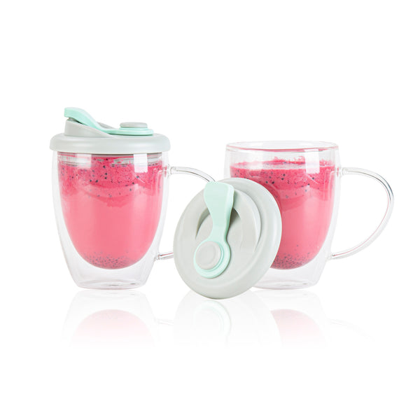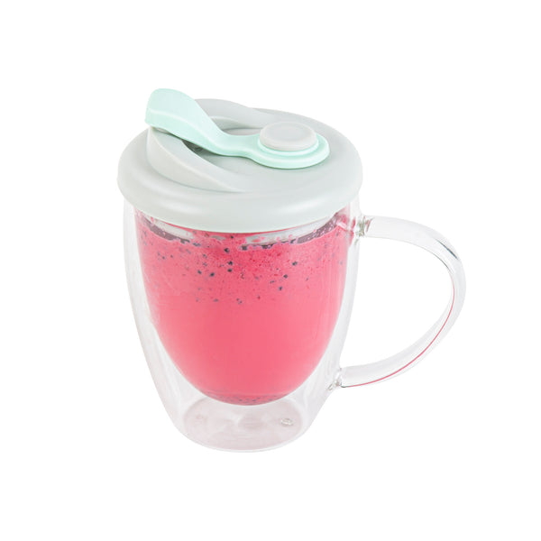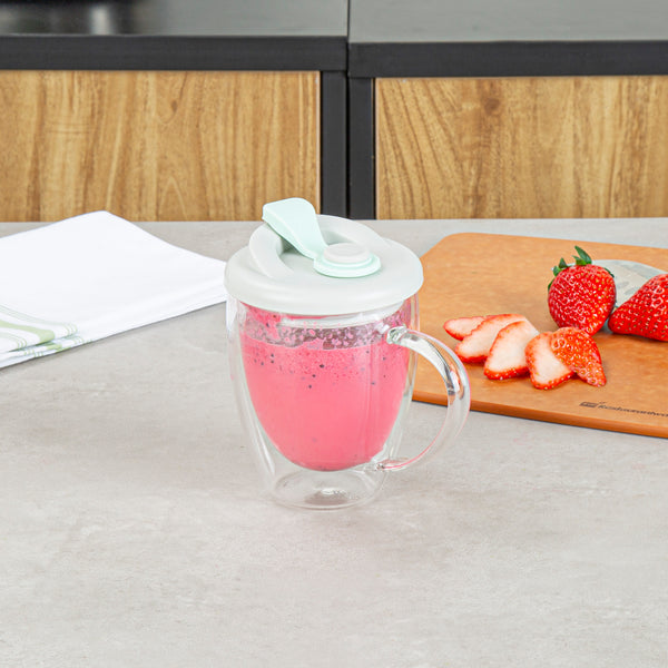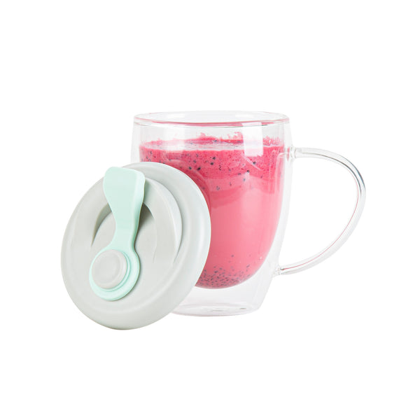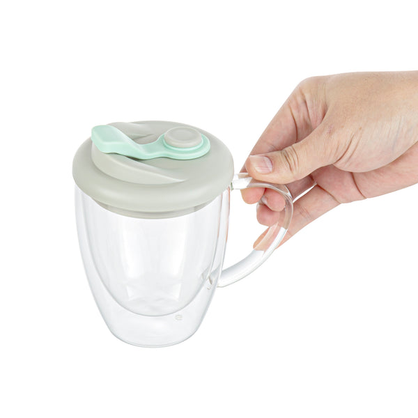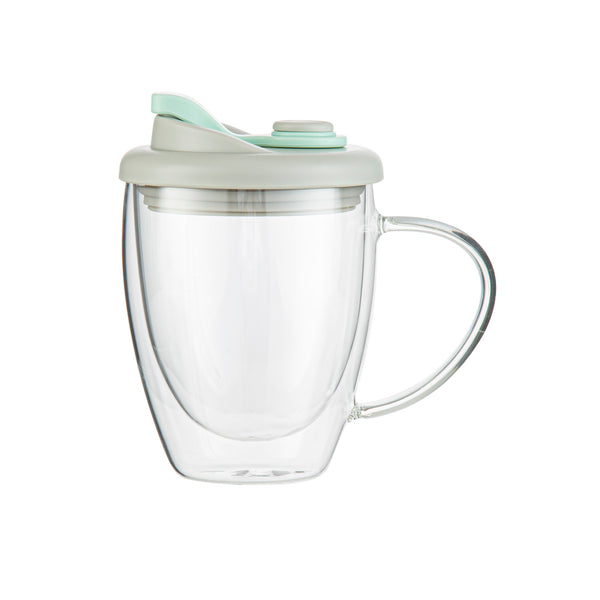 12 OZ GLASS TRAVEL MUG - DOUBLE WALL, BOROSILICATE