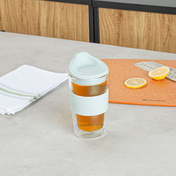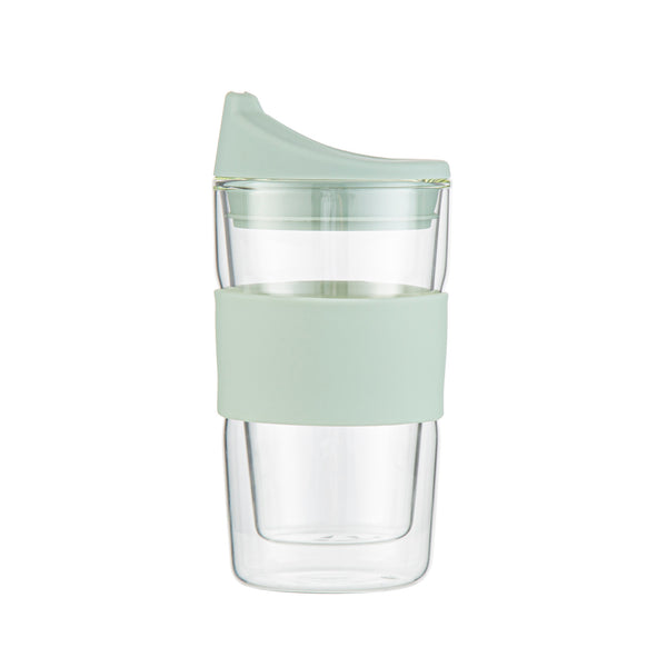 12 OZ GLASS TRAVEL MUG - DOUBLE WALL, BOROSILICATE