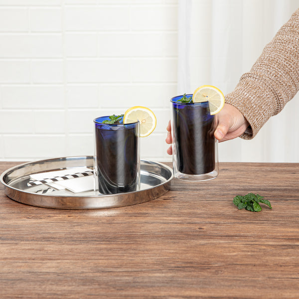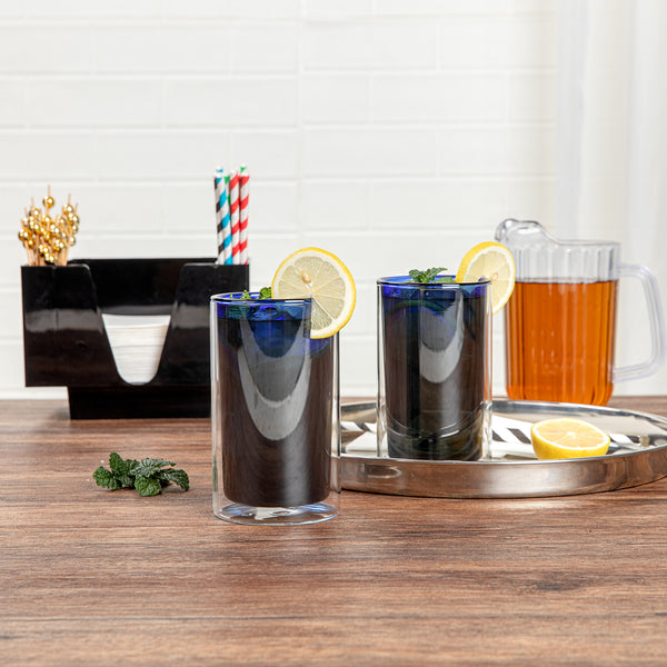 14 OZ BLUE GLASS TUMBLER - DOUBLE WALL, BOROSILICATE