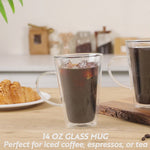 14 OZ GLASS MUG - DOUBLE WALL, BOROSILICATE, WITH HANDLE