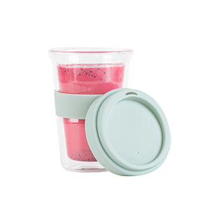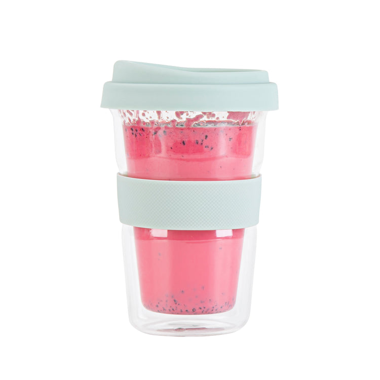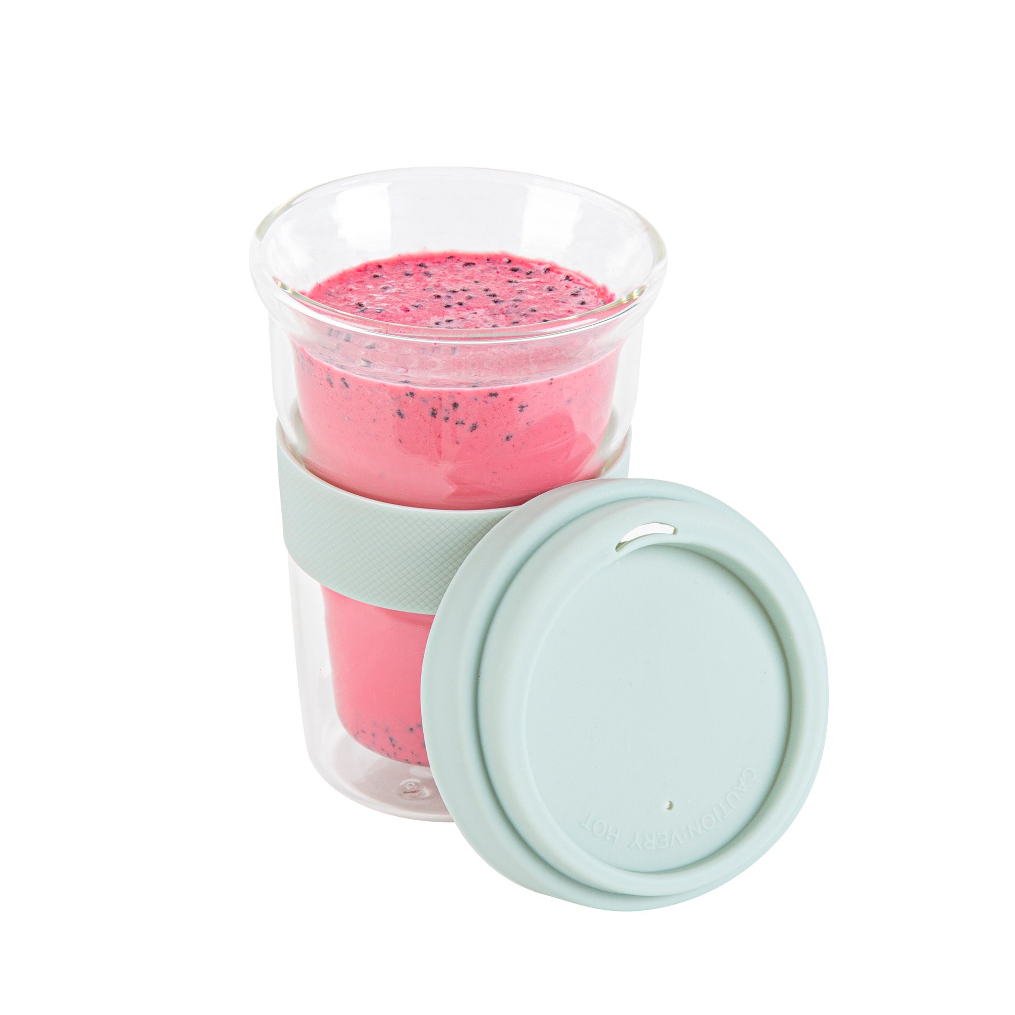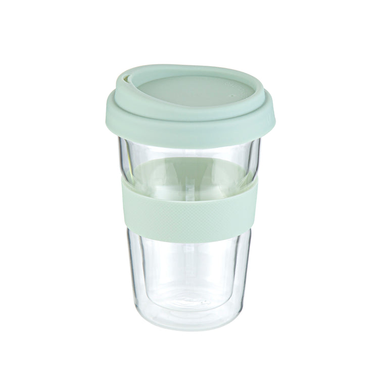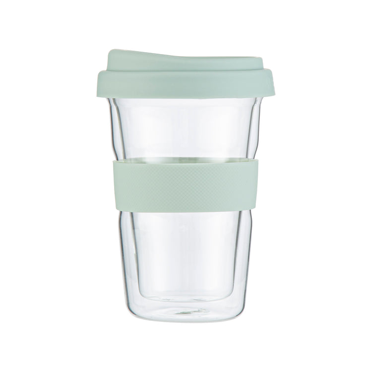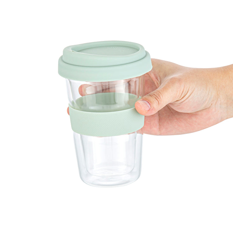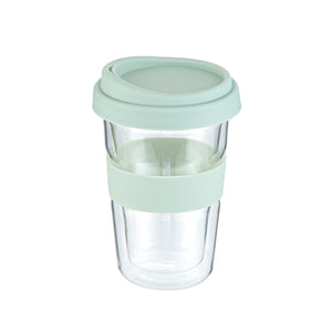 14 OZ GLASS TRAVEL MUG - DOUBLE WALL, BOROSILICATE