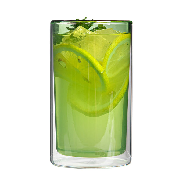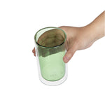 14 OZ GREEN GLASS TUMBLER - DOUBLE WALL, BOROSILICATE