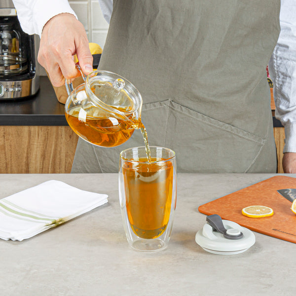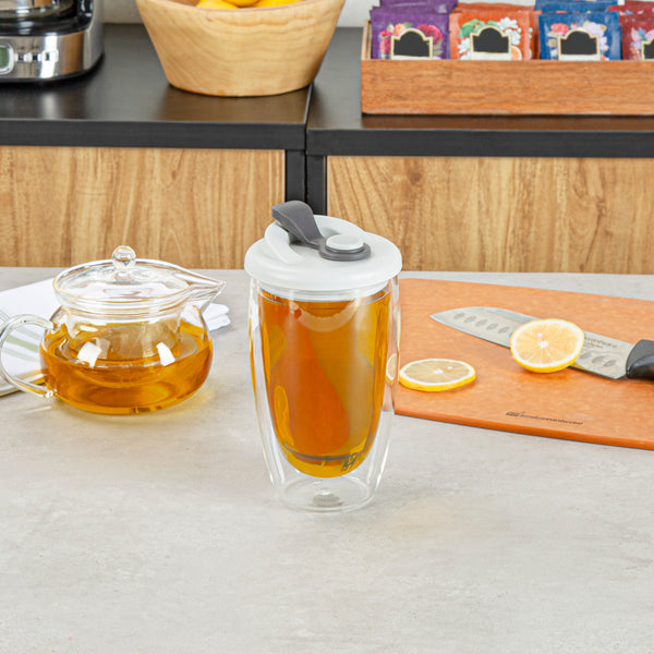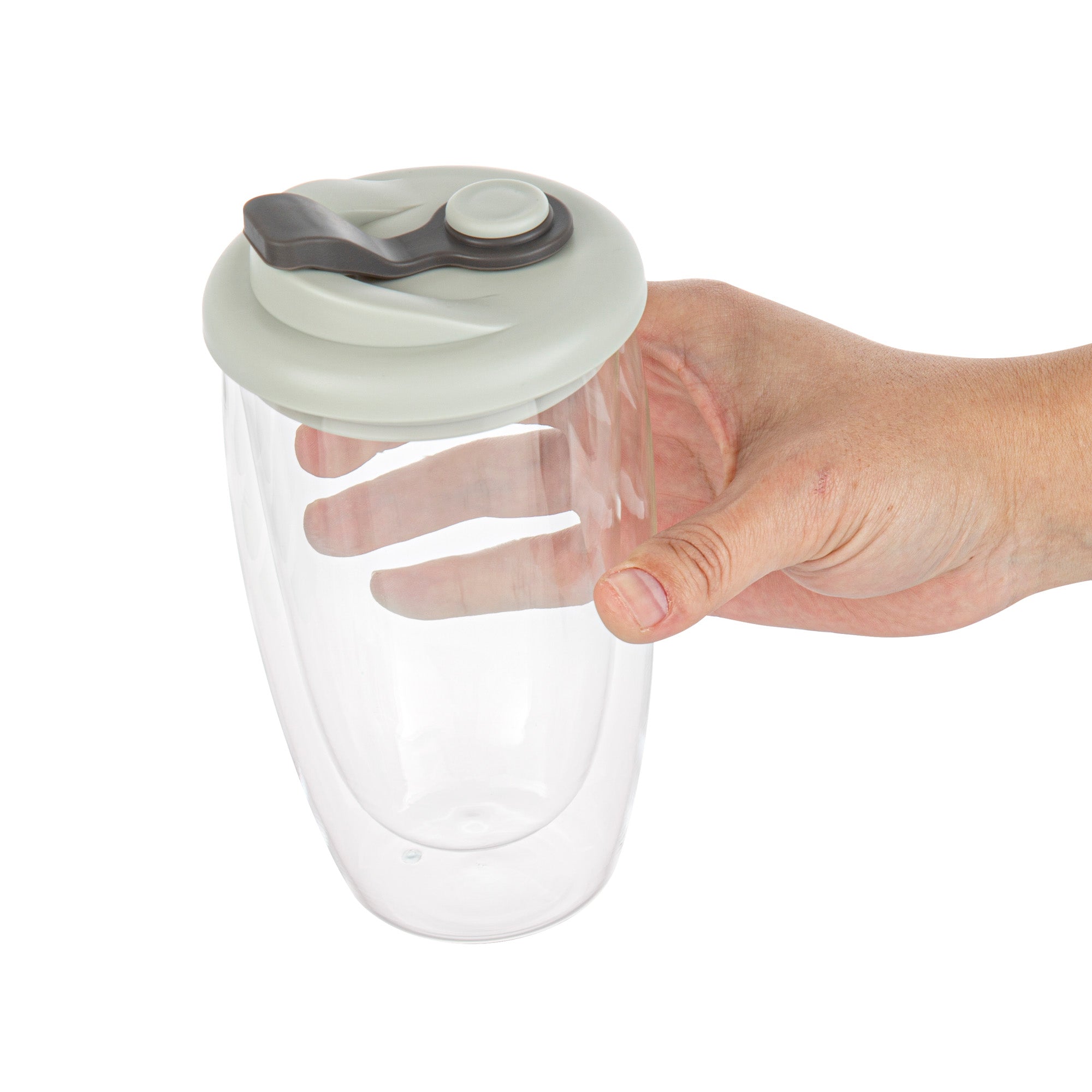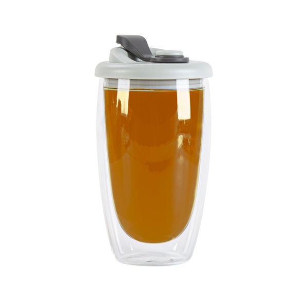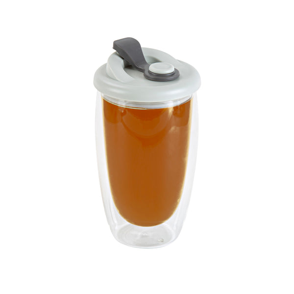 15 OZ GLASS TRAVEL MUG - DOUBLE WALL, BOROSILICATE