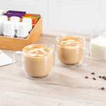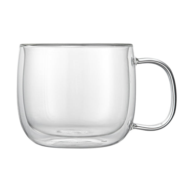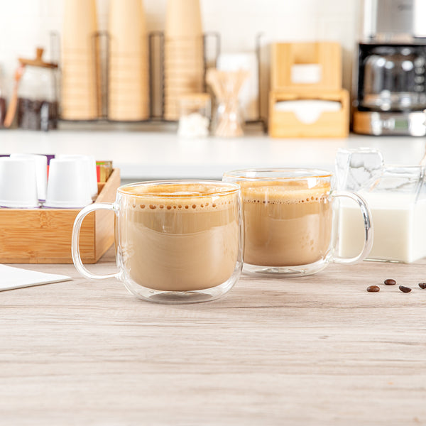 Enhance your customers' coffee indulgence with our Forma Professional 17-ounce Glass Coffee Mugs. Tailored for coffee aficionados, these borosilicate glass mugs with handles provide comfort and ease, elevating the coffee experience in your establishment. Crafted from durable borosilicate glass, these clear coffee mugs ensure durability and a lasting serving solution. Featuring a double-wall construction, these coffee mugs maintain beverage temperature consistency flawlessly. With a high heat resistance of up to 350F, these double wall mugs effortlessly accommodate piping hot espressos and refreshing lattes. Plus, these versatile mugs are microwavable, offering flexibility in usage. Simplify cleanup with these dishwashable glass mugs. Each glass mug boasts a generous capacity of 17 ounces, perfect for serving various beverages. Measuring 5.5 inches in diameter by 3.75 inches in height, these freezable coffee mugs present a compact and sophisticated serving solution. Sold in a 2 count box.