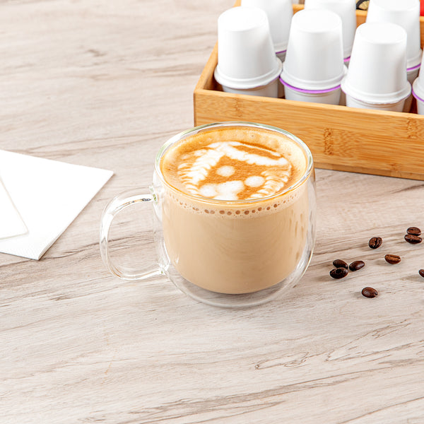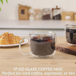 17 OZ GLASS COFFEE MUG - DOUBLE WALL, BOROSILICATE, WITH HANDLE